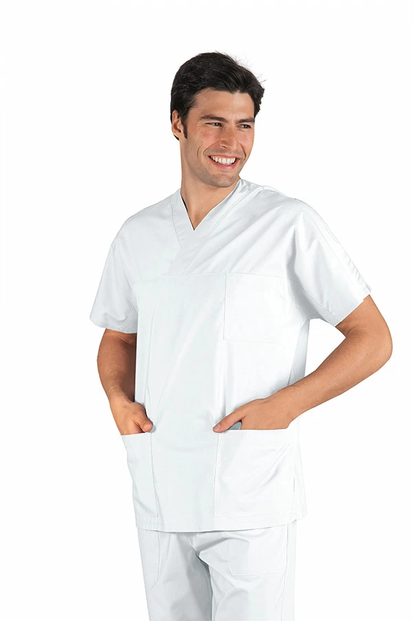 045000 Casacca Collo a V Unisex(Uomo|Donna) Isacco | Bianco | 100% Cotone | 190 gr/m2