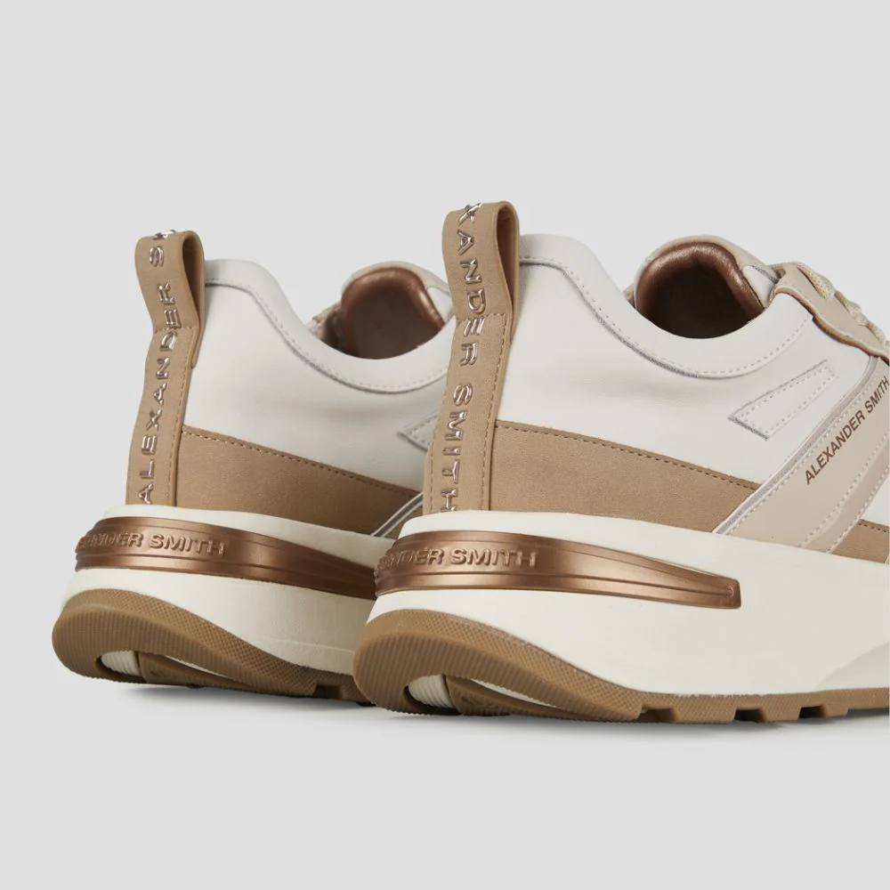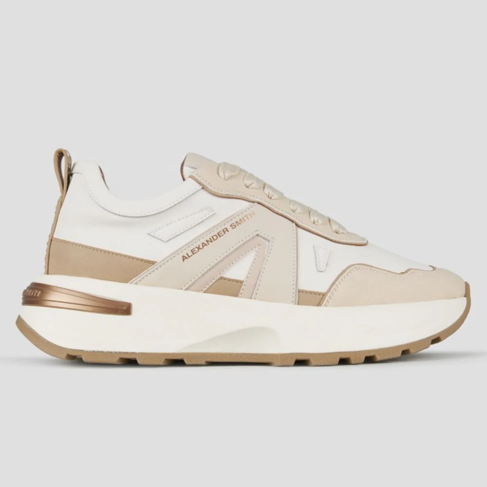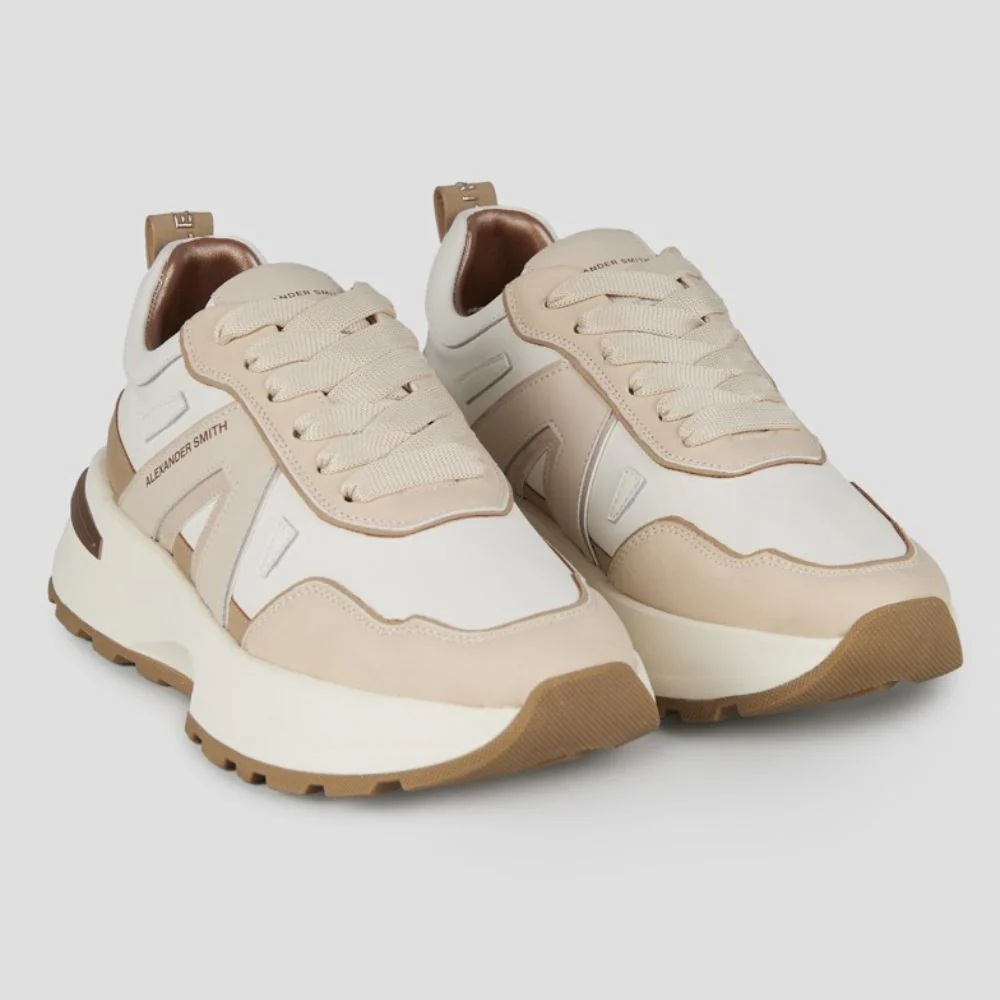 Le sneakers da donna Alexander Smith uniscono eleganza e performance con una tomaia in pelle e nylon per garantire resistenza e comfort. I dettagli sofisticati e la suola robusta assicurano una camminata stabile e di carattere, mentre la combinazione di pelle e suede beige conferisce un look versatile, perfetto per ogni occasione. Ideali per chi cerca uno stile distintivo senza rinunciare alla praticitร .