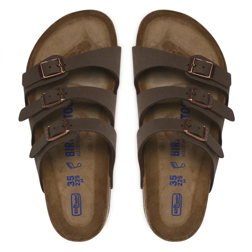 La ciabatta Birkenstock Florida รจ dotata di tre cinturini regolabili con fibbie per garantire una calzata perfetta. Il plantare anatomico e la tomaia in materiale Birko-Florยฎ dermoaffine e resistente, con elegante effetto Nabuk, offrono un comfort e una robustezza superiori. Ideale per la primavera e l’estate, disponibile in colore MOCCA.