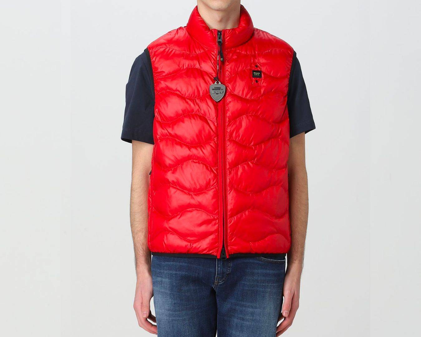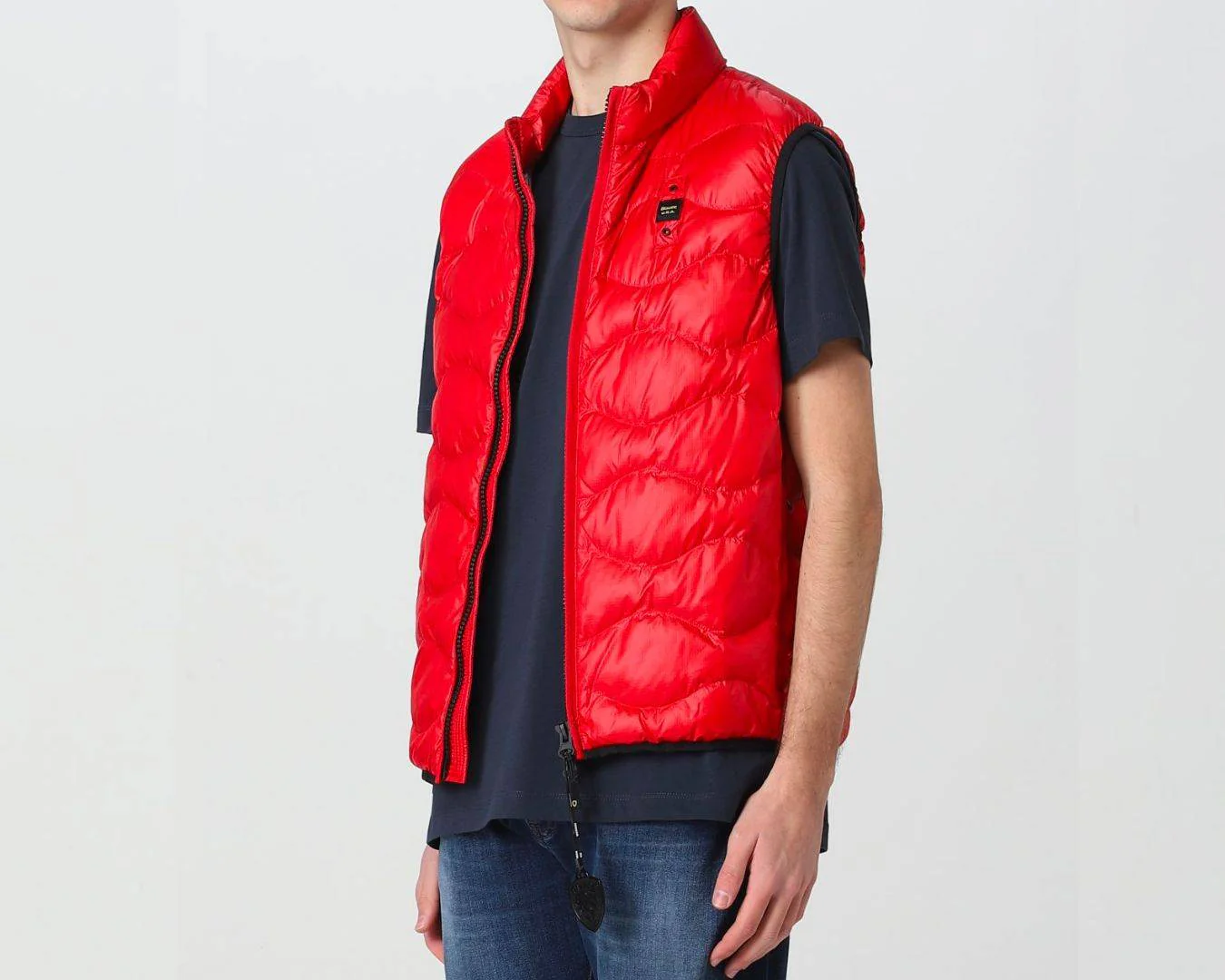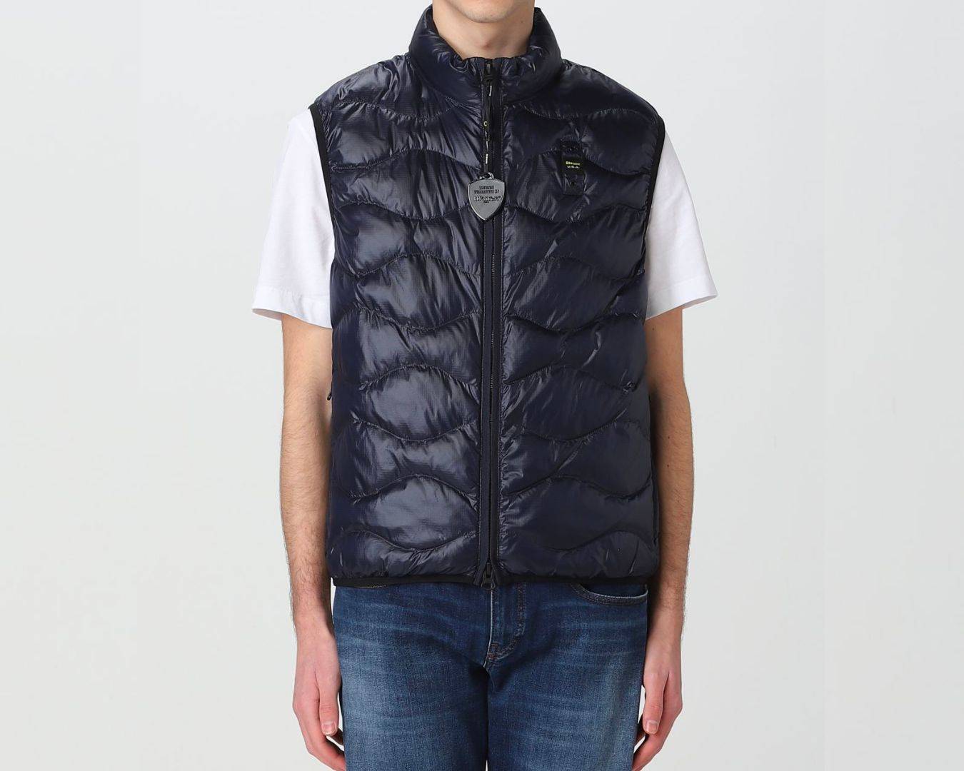 Piumino smanicato in nylon micro-rip con leggero motivo check e impunturato a onde orizzontali. Chiusura centrale con cerniera nascosta e para zip interna. Due tasche con zip verticale nascosta. Fettuccia in tono lungo le cerniere. Profilo in lycra elastica in contrasto colore sul giro manica e sul fondo. Allโinterno fodera in contrasto colore e due tasche interne con velcro. Caratteristico passante Blauer cucito sul petto a sinistra. Imbottitura Soronaยฎ Dupontยฎ Aura parzialmente a base vegetale, lavabile e inodore, confortevole, calda e che mantiene la forma nel tempo.
