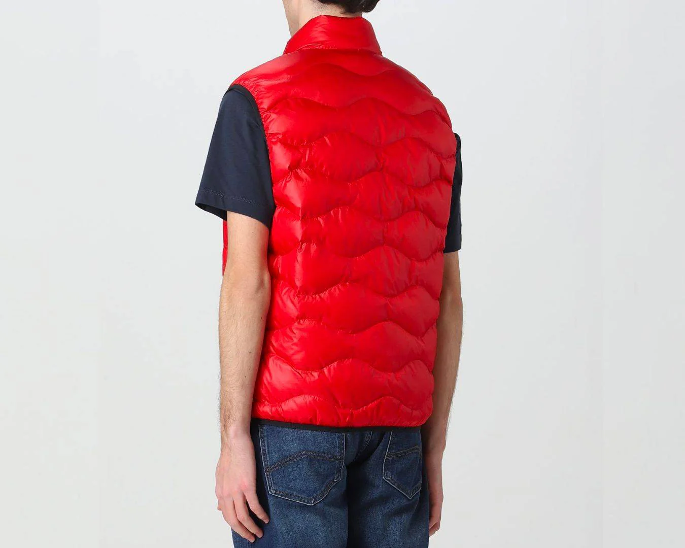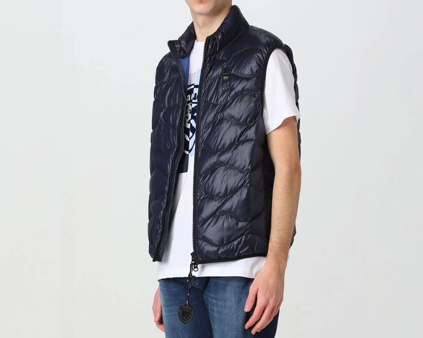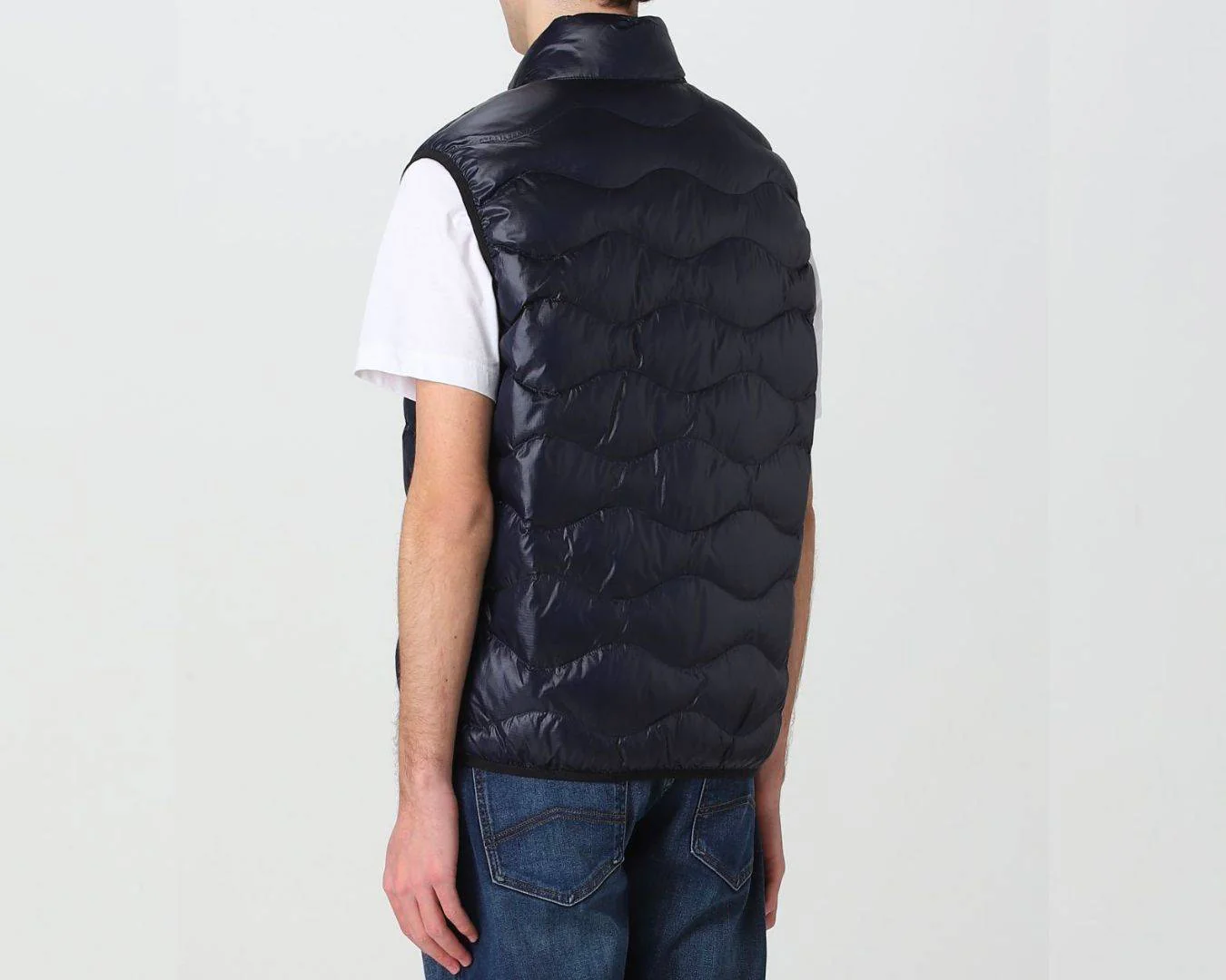 Piumino smanicato in nylon micro-rip con leggero motivo check e impunturato a onde orizzontali. Chiusura centrale con cerniera nascosta e para zip interna. Due tasche con zip verticale nascosta. Fettuccia in tono lungo le cerniere. Profilo in lycra elastica in contrasto colore sul giro manica e sul fondo. Allโinterno fodera in contrasto colore e due tasche interne con velcro. Caratteristico passante Blauer cucito sul petto a sinistra. Imbottitura Soronaยฎ Dupontยฎ Aura parzialmente a base vegetale, lavabile e inodore, confortevole, calda e che mantiene la forma nel tempo.