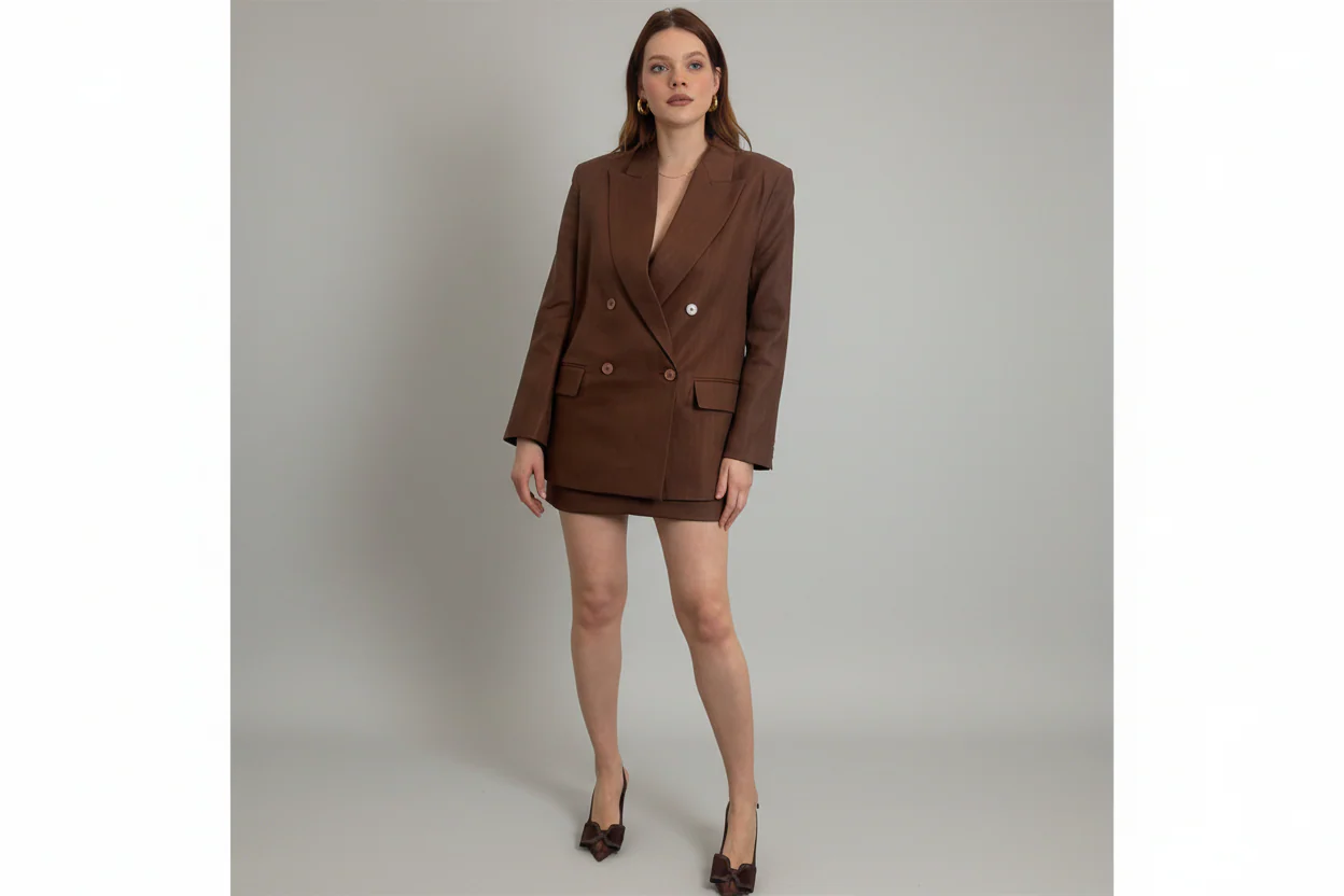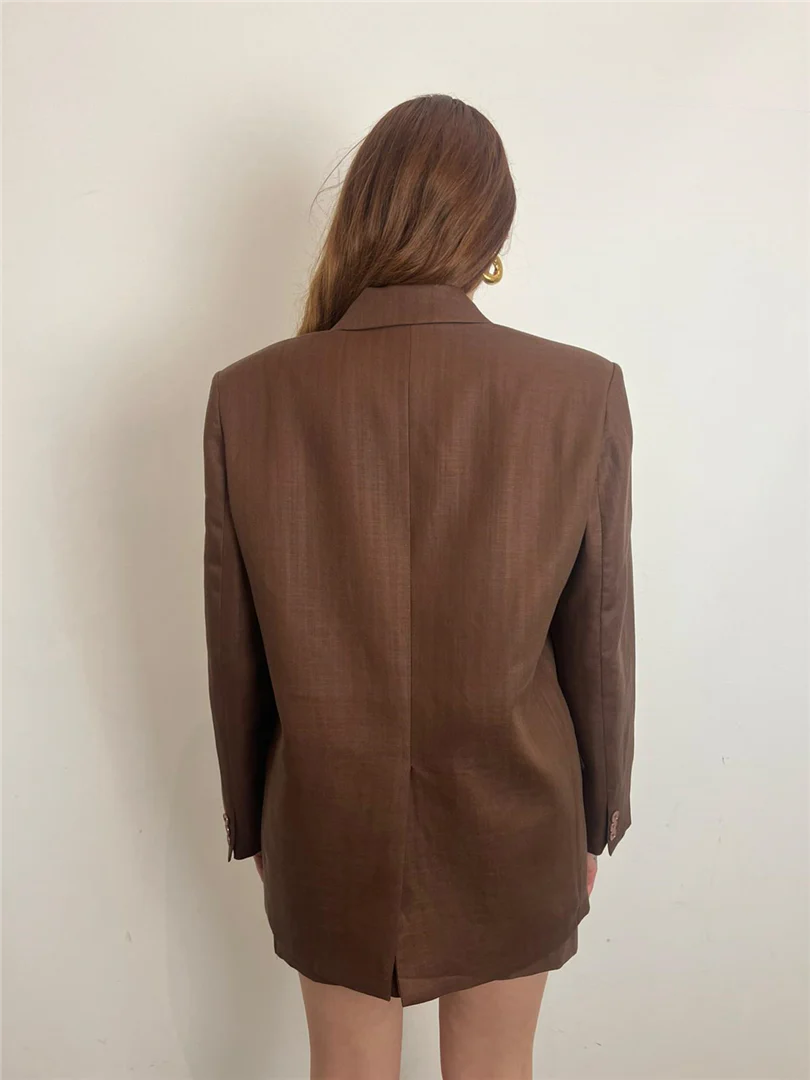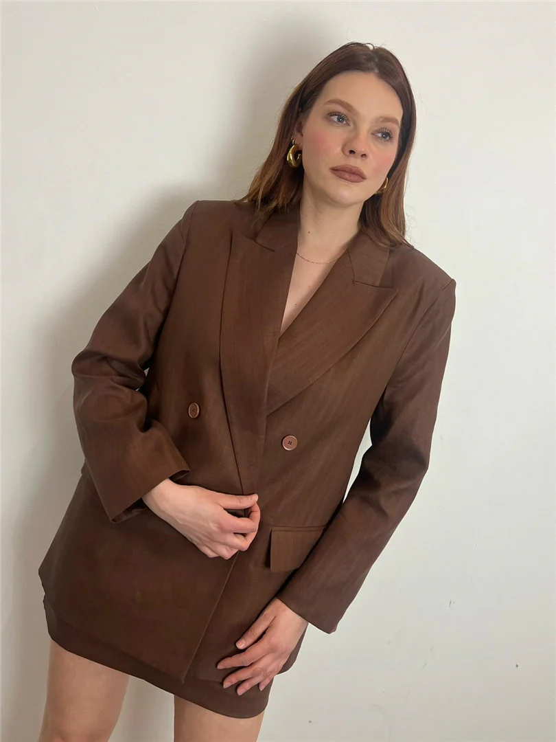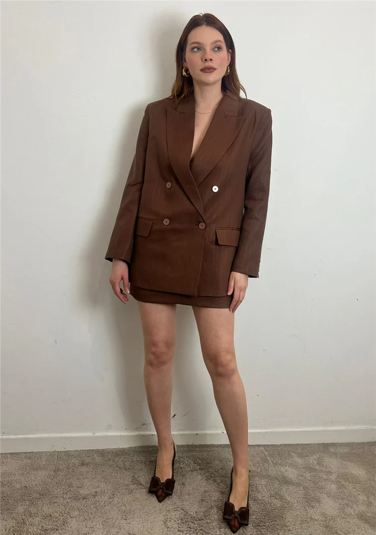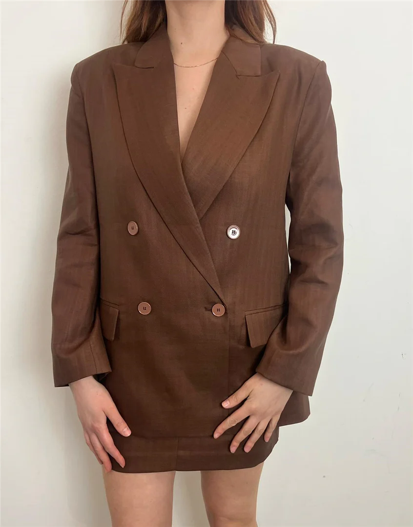Blazer Vicolo doppiopetto in misto lino color bruciato. Eleganza naturale e freschezza per un look sofisticato e contemporaneo, perfetto per la stagione estiva.