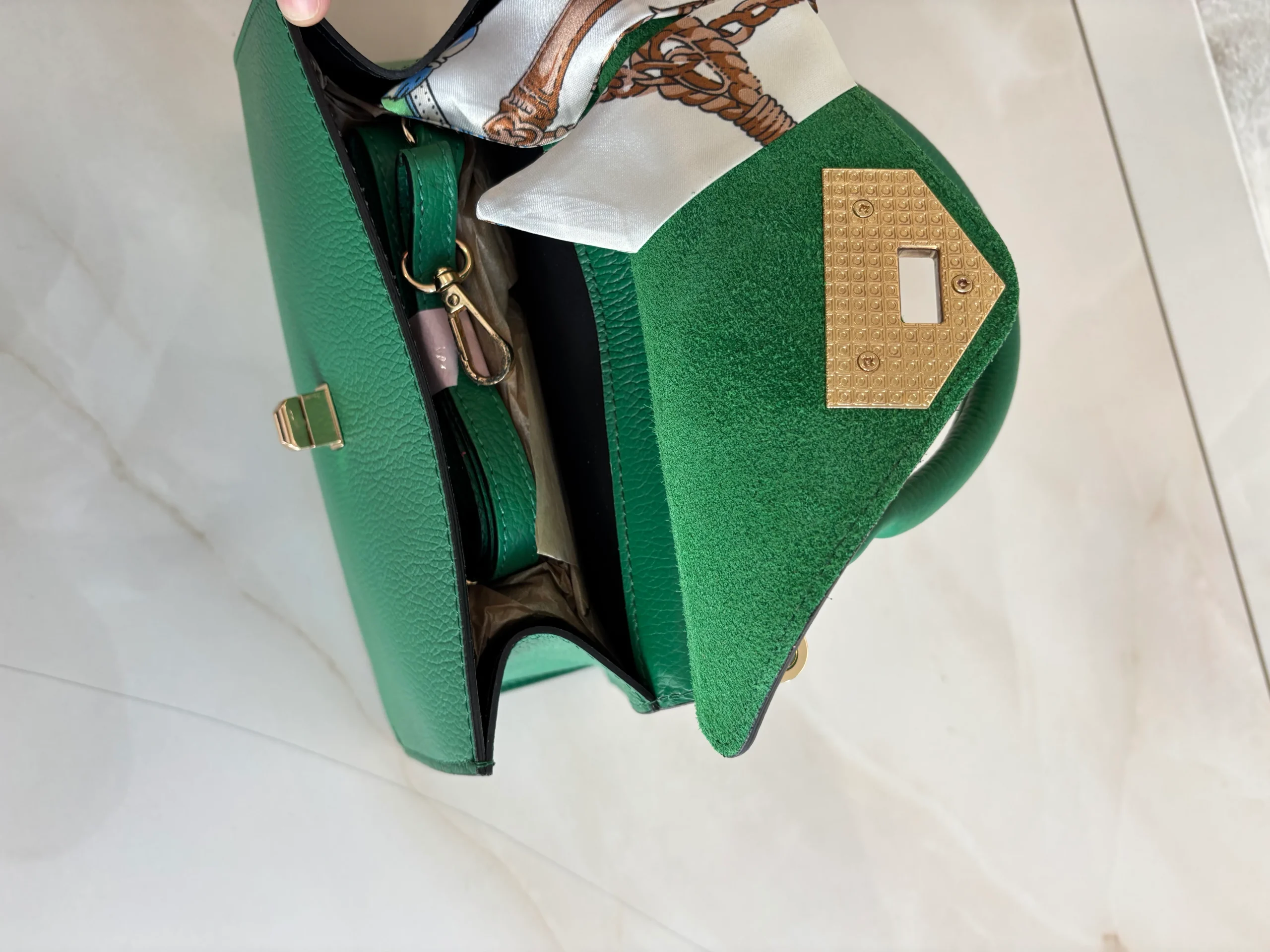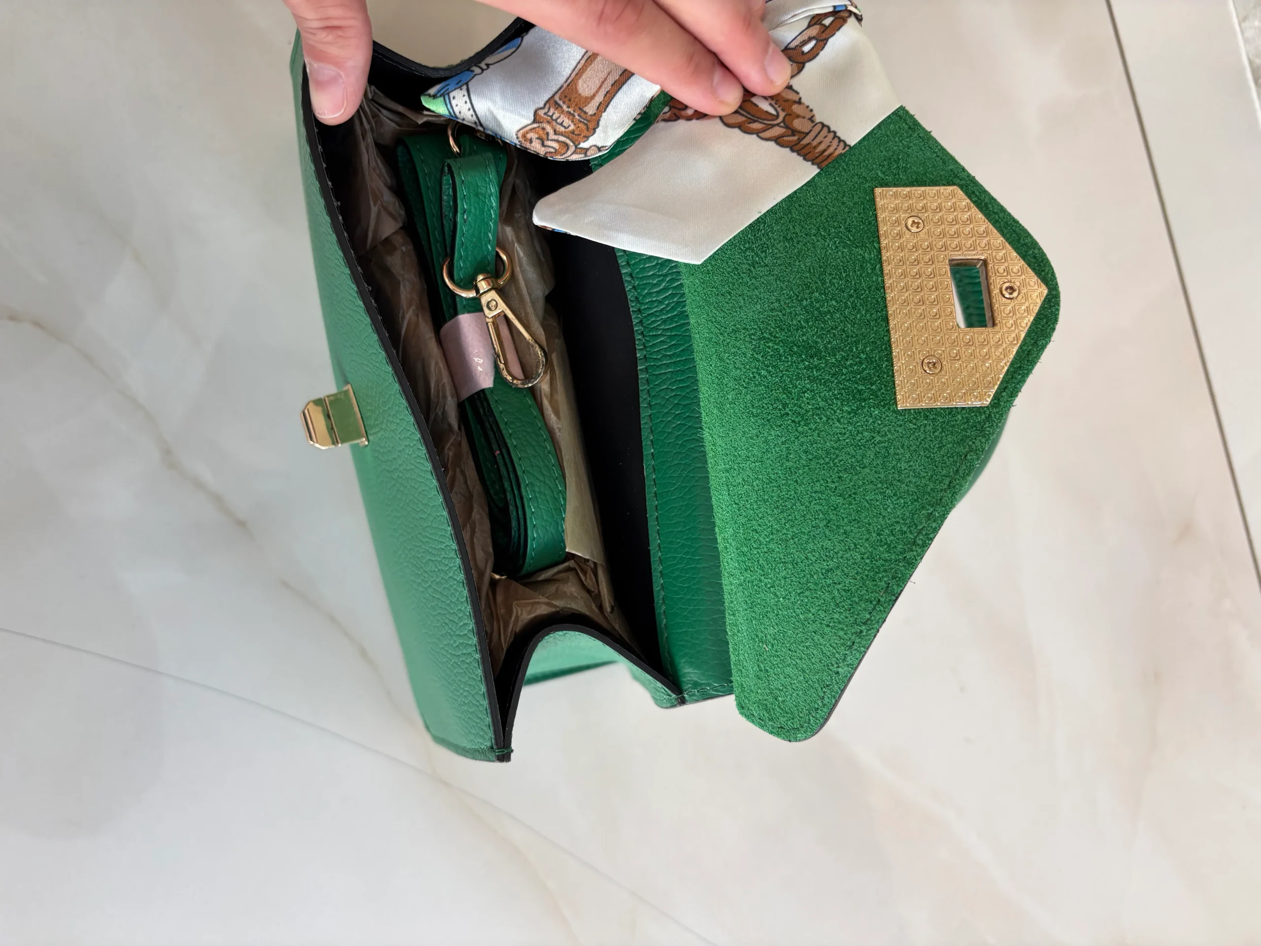 100% vera pelle misure: 11X30X25 con foulard incluso