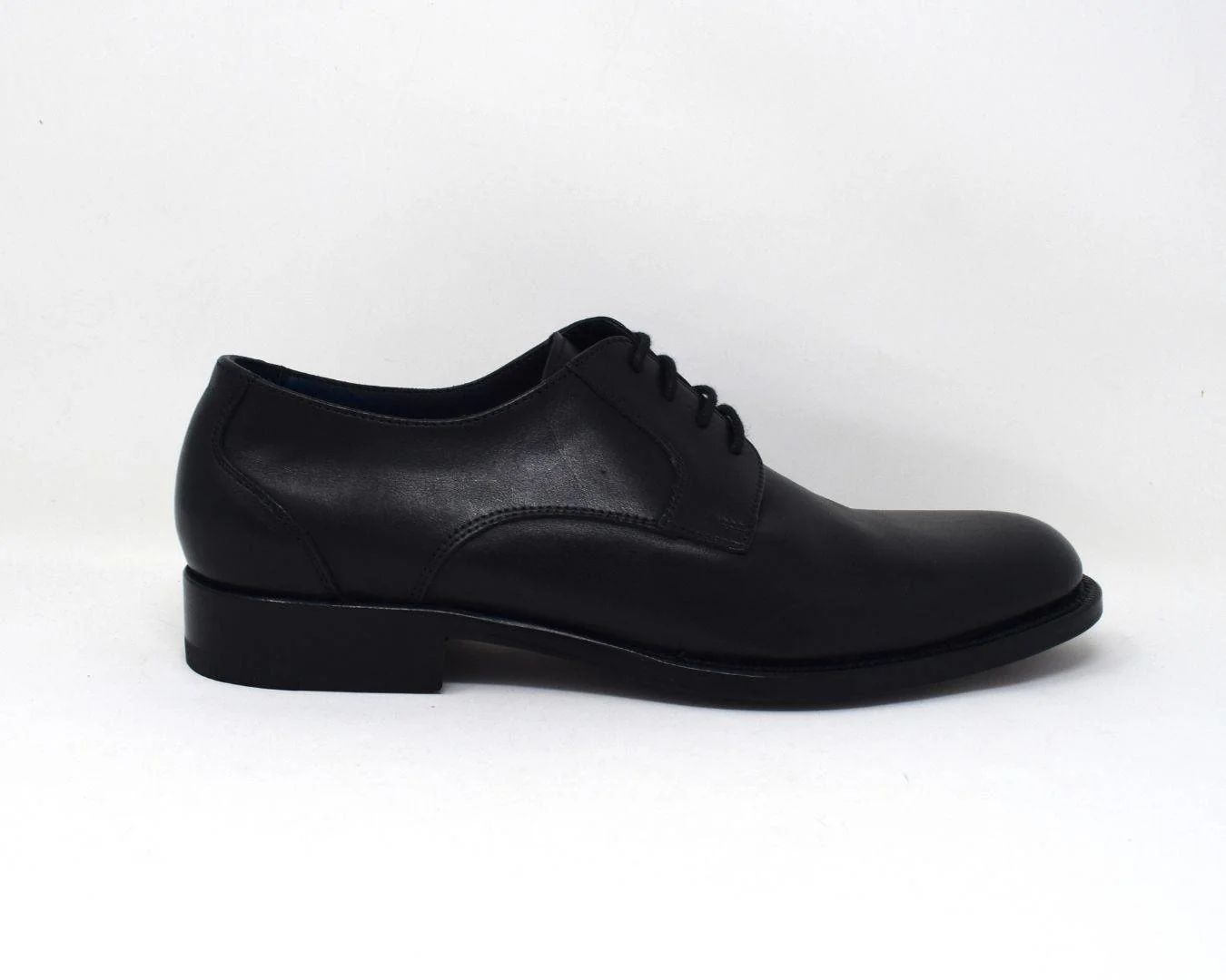 Scarpa Derby in pelle. Derby allacciata con suola in cuoio e mezza piantina in gomma antiscivolo. Pellame Italiano e lavorazione artigianale. Made in Italy 100%.