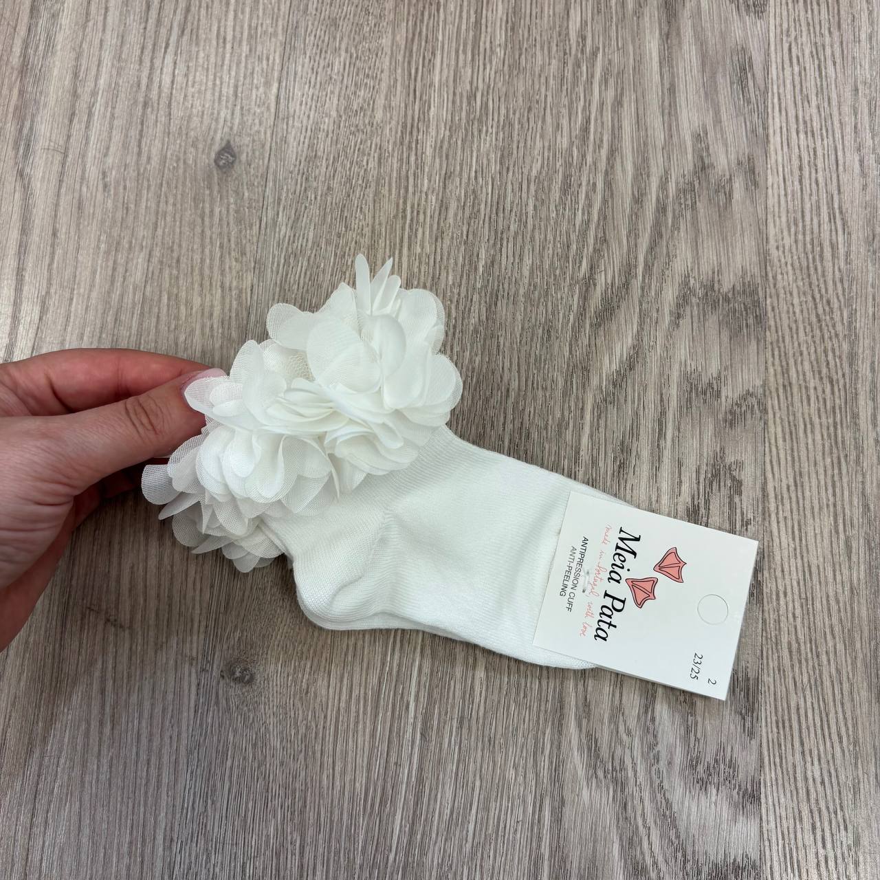 Da piccole le mamme ci riempivano di pizzi e merletti ed oggi per fortuna questo stile รจ tornato di moda Calzini in cotone delicatissimi e romantici con bordo che simula i petali di un fiore Perfetti per qualsiasi completino o una cerimonia.