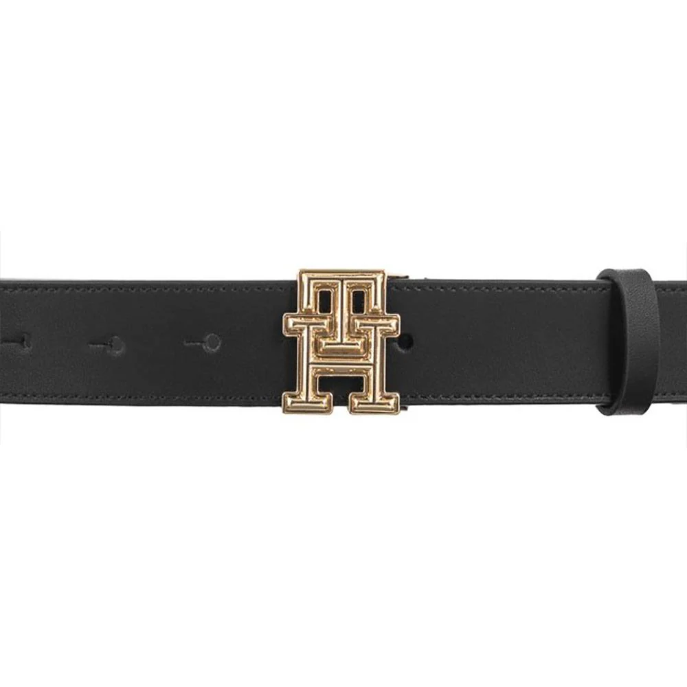 Cintura donna Tommy Hilfiger in nero con logo oro in metallo. Indossala per un look moderno e distintivo!