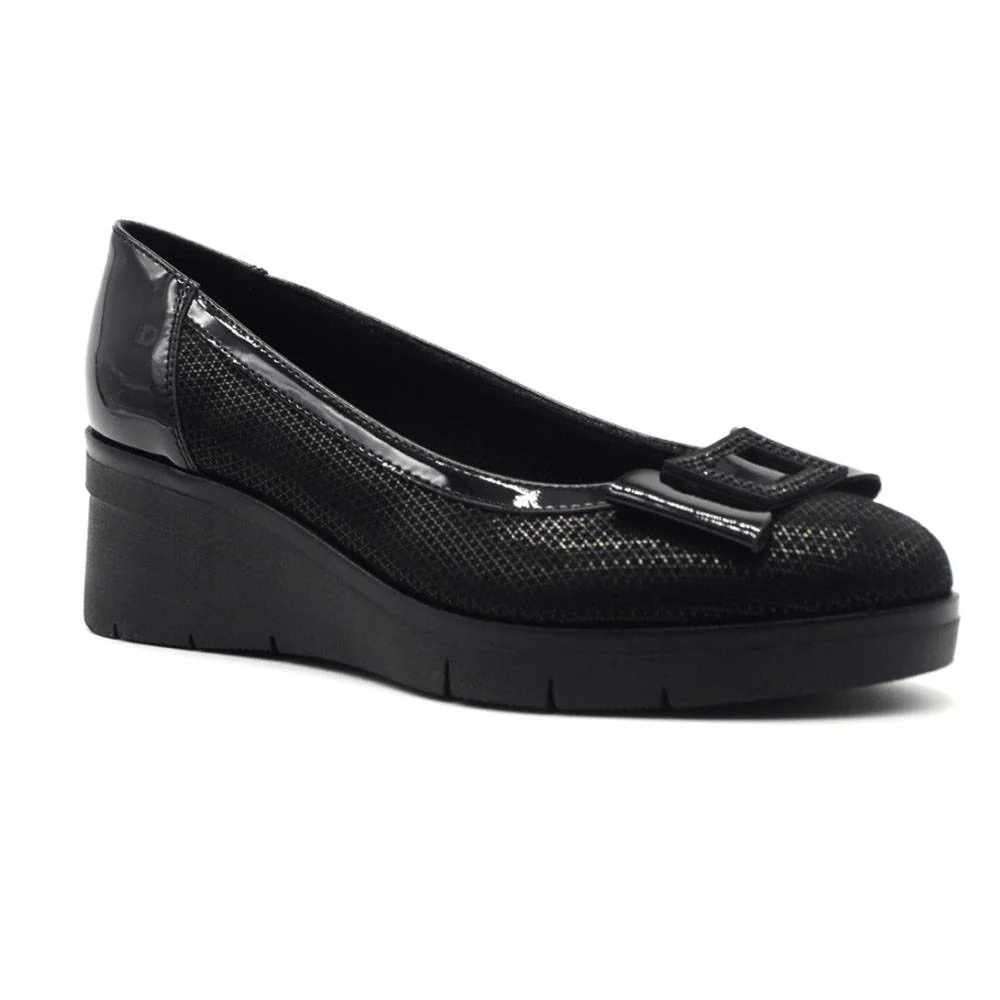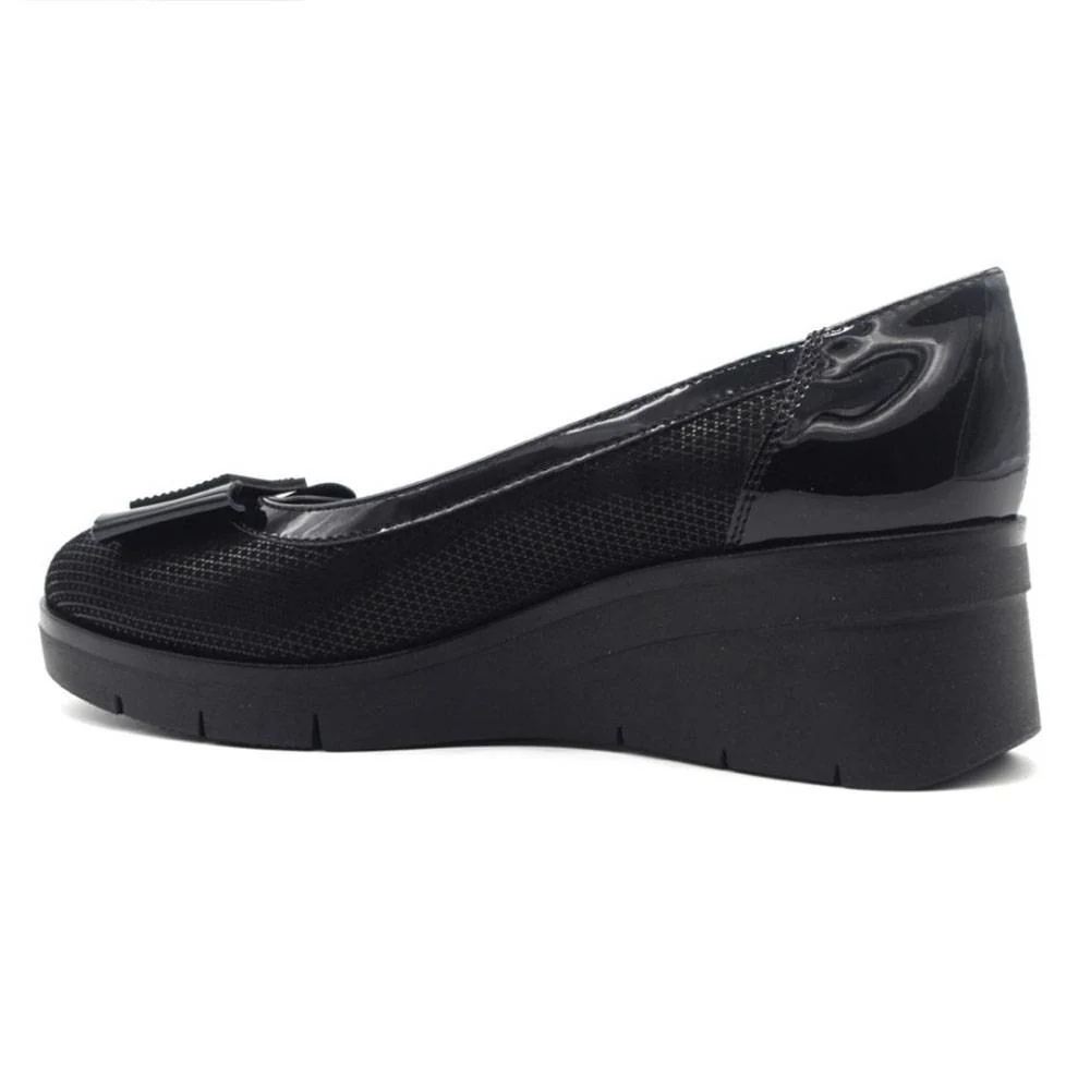 Mocassino con fiocco Donna Serena linea comoda, suola in gomma e tomaia in pelle effetto vernice. Disponibile in nero.