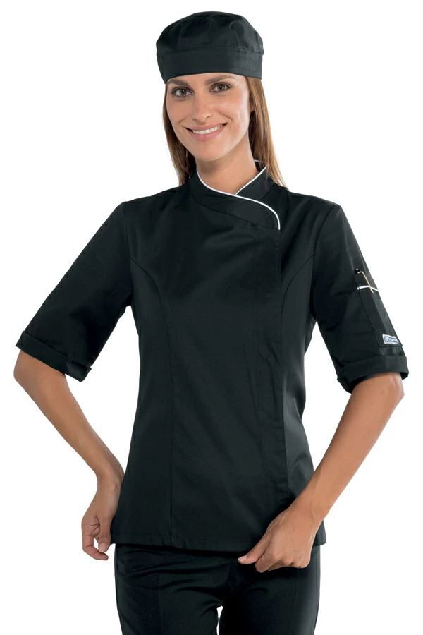 Giacca Lady Snaps Isacco | Giacca Cuoco | Donna | Nero+Bianco | 195gr/m2