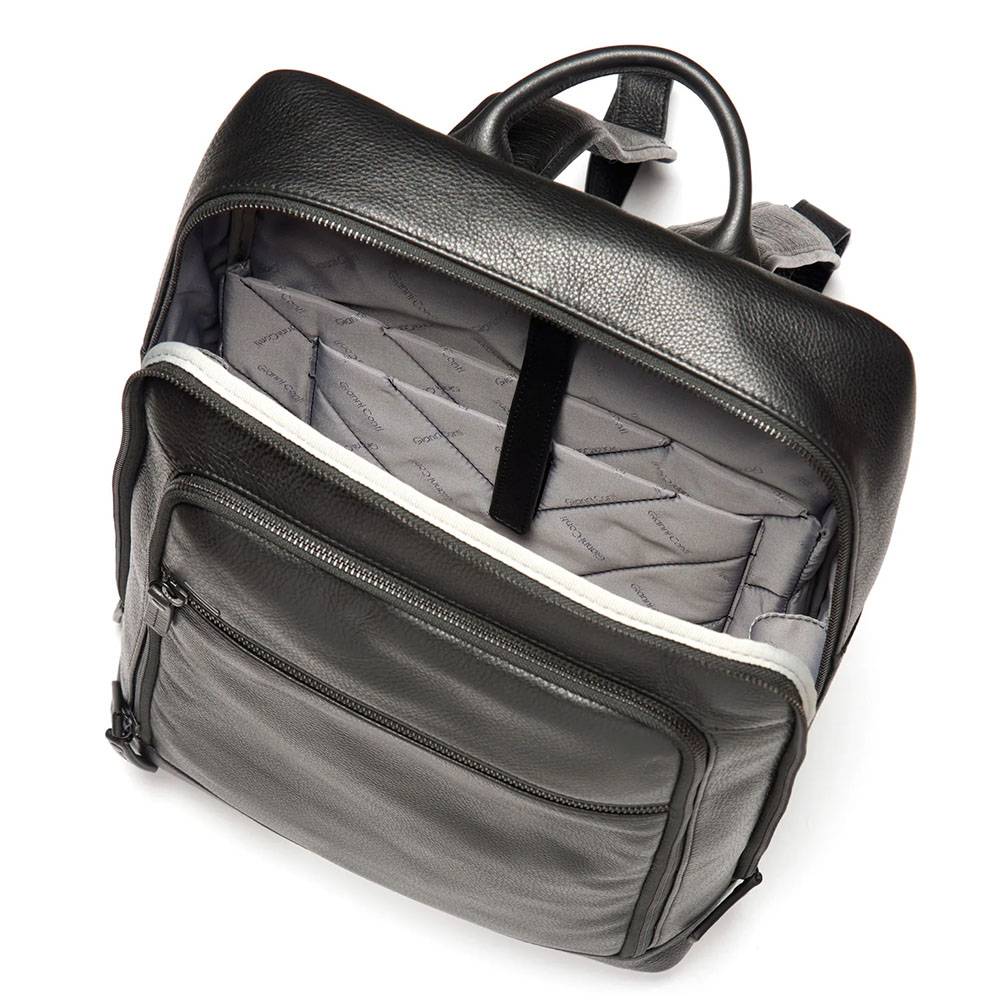 Lo Zaino Gianni Conti modello Colin è realizzato in pelle. Ha tre pratici comparti con chiusura a zip e ha una tasca imbottita per pc da 15.6″ e tablet da 11″ e altre tasche per documenti e altri oggetti. L’esterno è caratterizzato da una tasca con chiusura a zip sul fronte e il logo in fondo. E’ dotato di un manico e due spallacci regolabili. Zaino Gianni Conti uomo Colin in pelle: stile e praticità per l’uomo contemporaneo.