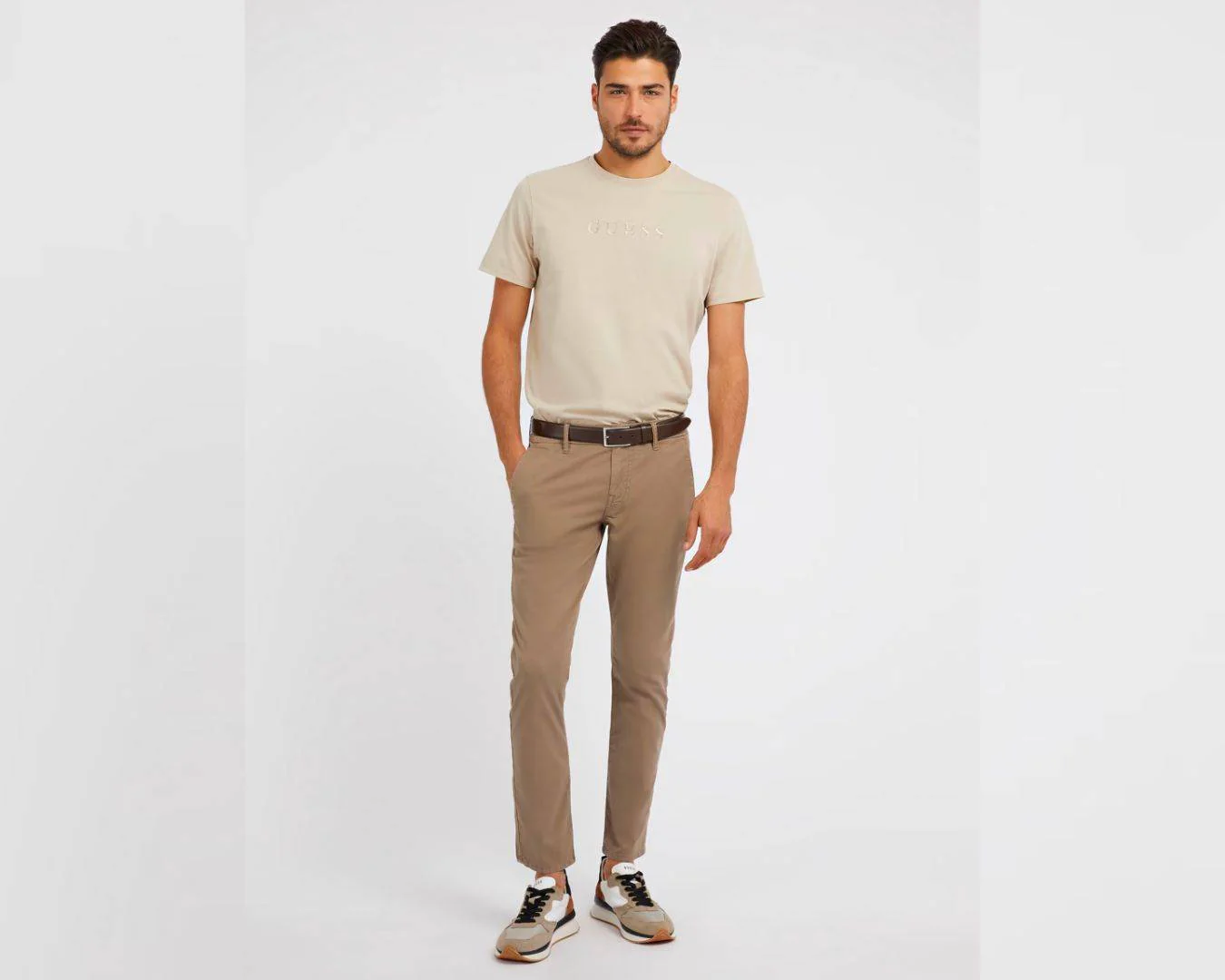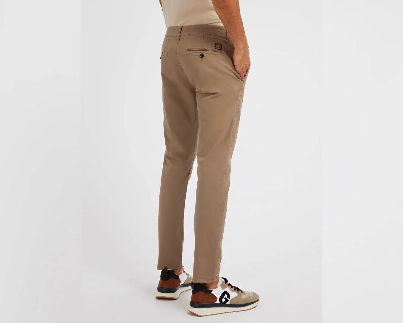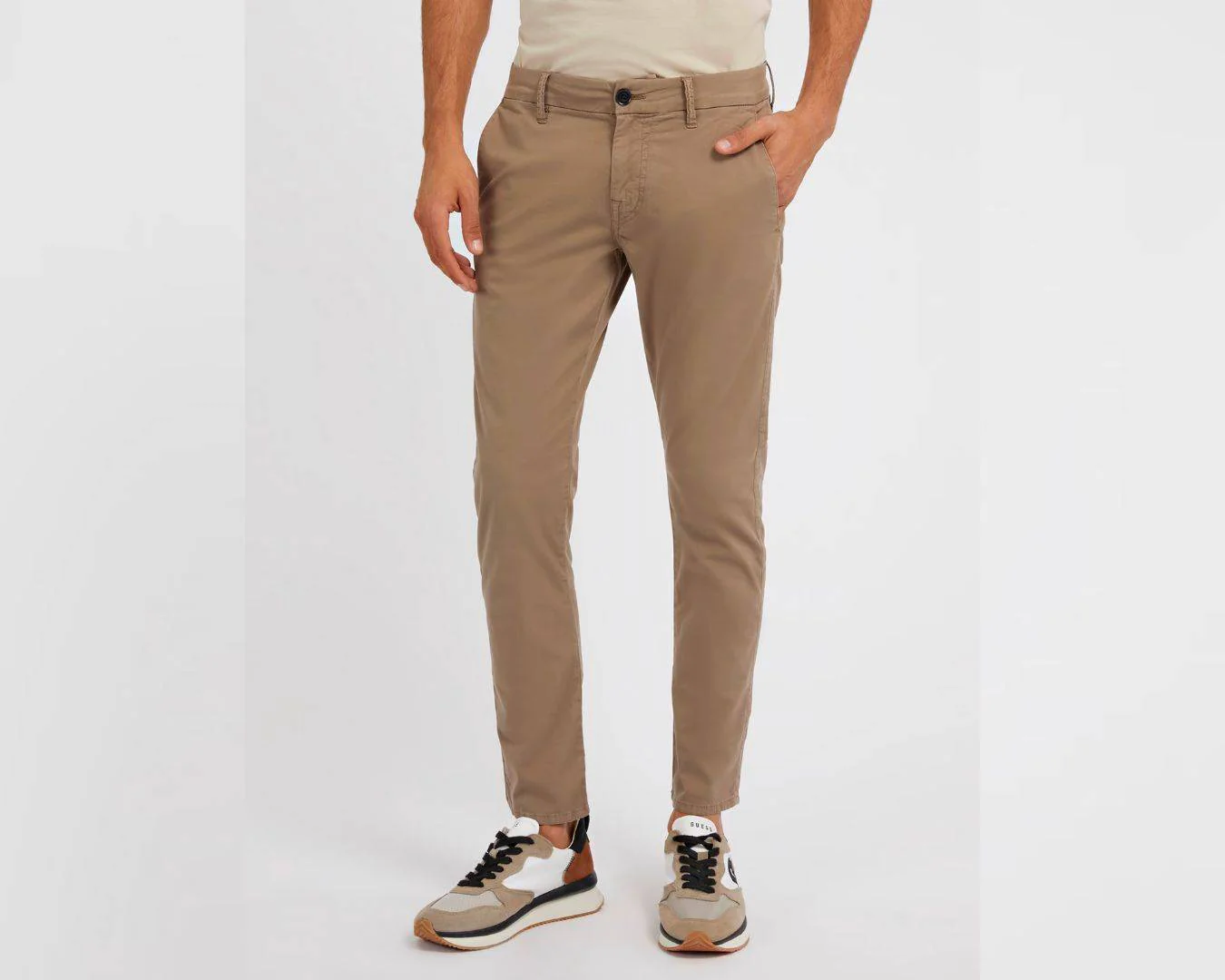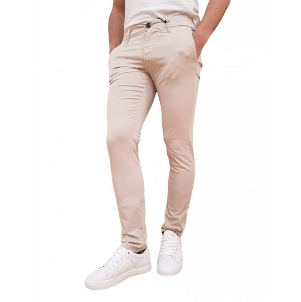 Pantalone in misto cotone. Modello chino. Vita bassa, gamba stretta. Vestibilitร skinny. Chiusura frontale con bottone e cerniera lampo.