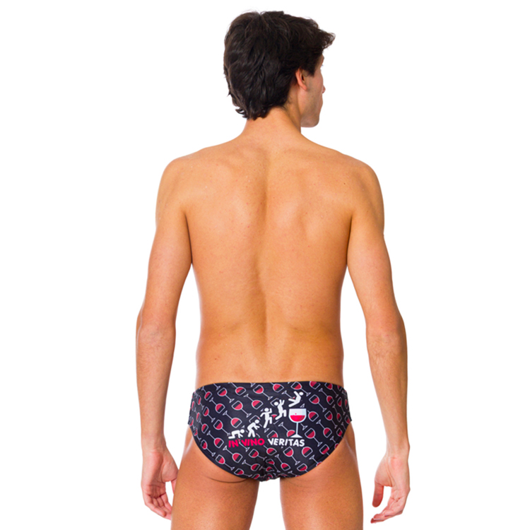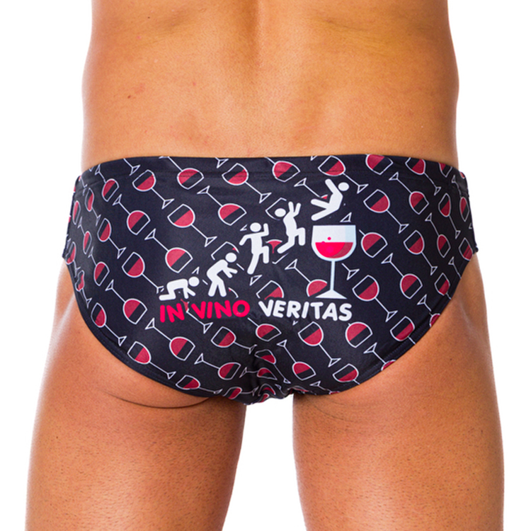 Un modo di dire latino ci ricorda che quando beviamo è più facile rivelare la verità. Una ricca trama di calici di vino rosso per chi vuole sfoggiare un costume moderno, elegante ma sempre ironico, come si può notare dal design posteriore del costume, pensato per incuriosire e strappare un sorriso…. Un modello elegante e design particolare, per chi vuole distinguersi anche in piscina!