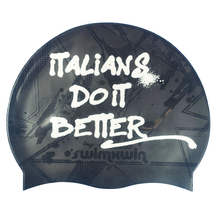 Lo sanno da tempo in tutto il mondo che gli Italiani lo fanno meglio e questa cuffia vuole celebrare le abilità degli italiani! Ironica, (ma, ne siamo certi, profondamente vera),  saprà attirare l’attenzione. Idea perfetta anche come regalo, per ironizzare sugli steriotipi legati alla nostra splendida nazione.  Su una base  contemporanea e accattivante giocata su uno schizzo tono su tono lucido/opaco. L’uso è consigliato per il nuoto in piscina, l’allenamento, in gara o semplicemente per un tuffo! Team Cool, ipoallergenica.
