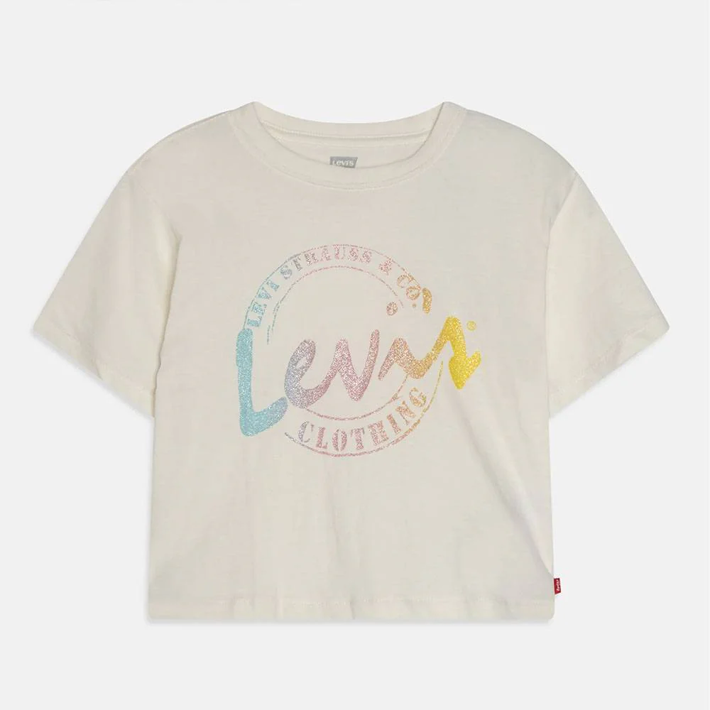 Questa t-shirt a manica corta di Levi’sยฎ รจ realizzata in morbido cotone biologico e presenta una scritta stampata sul davanti. Il taglio accorciato assicura comunque una copertura completa e un look che esalta la figura in cui i bambini alla moda potranno stare piรน comodi.