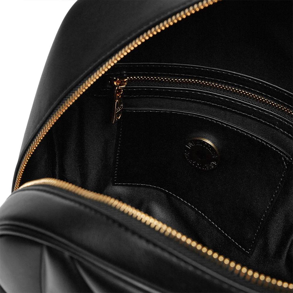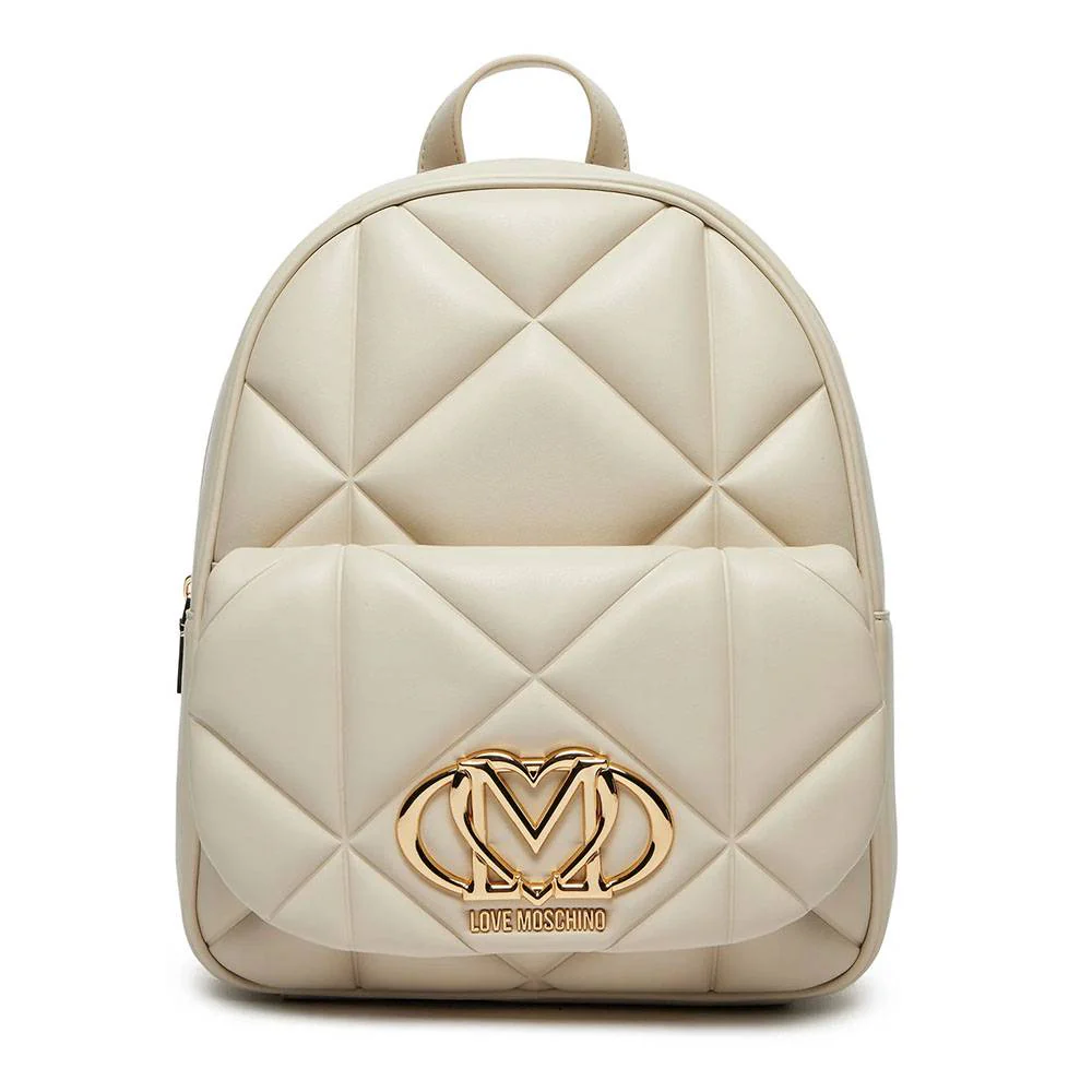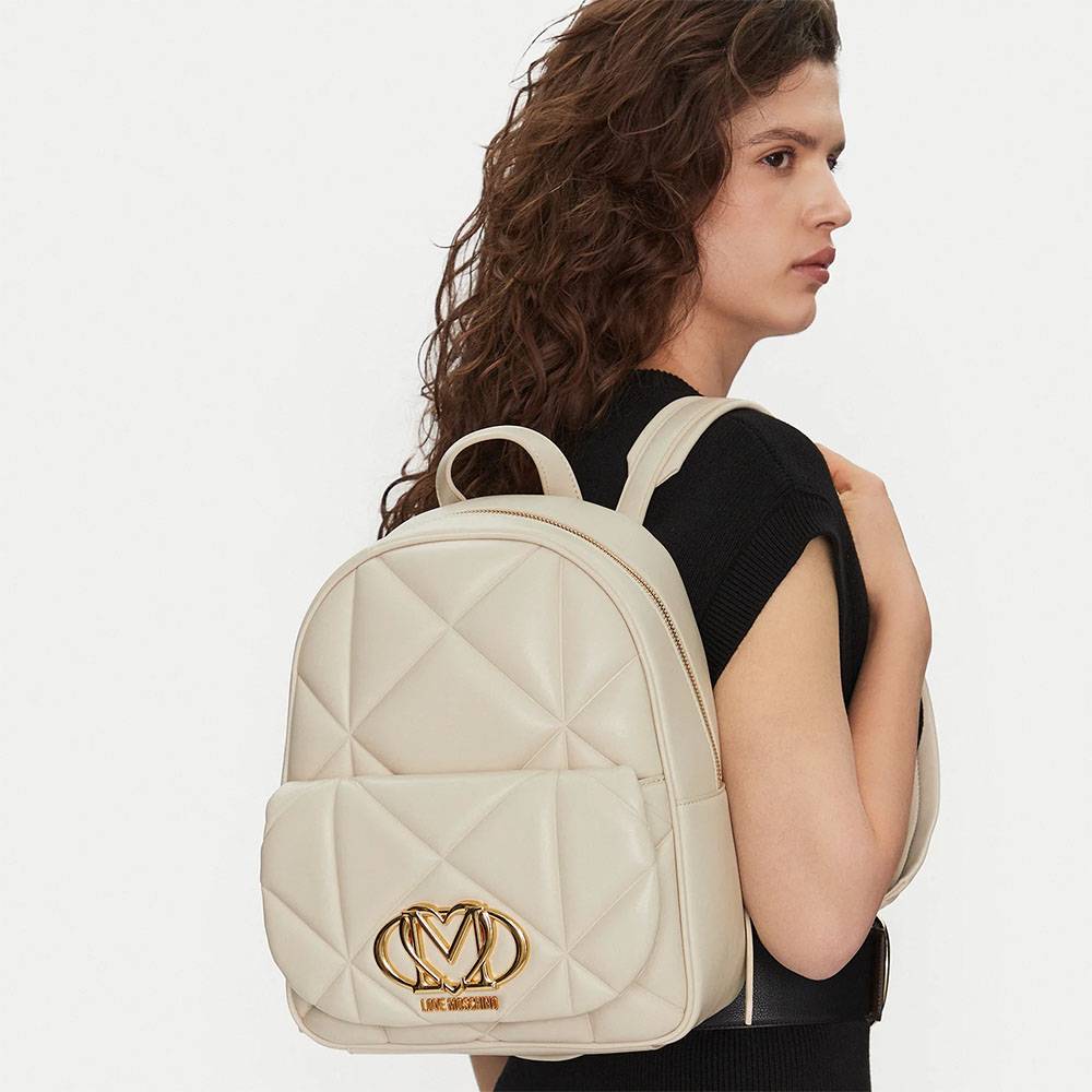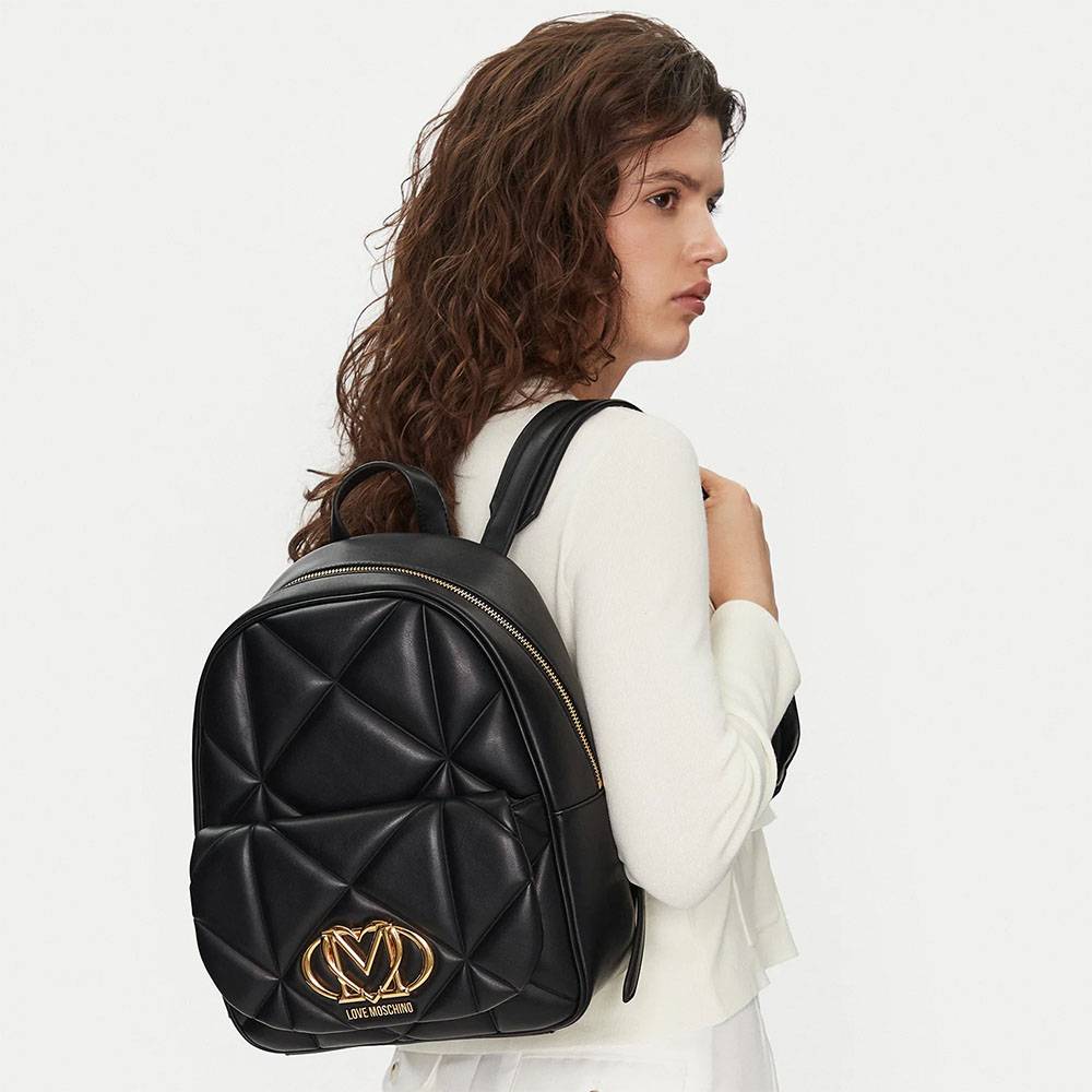 Zaino Love Moschino donna in ecopelle trapuntata con logo in metallo oro sul davanti. Spalline regolabili in ecopelle chiusura principale con zip e tasca anteriore con patta e bottone magnetico.Dimensioni: 26.0 x 33.0 x 10.0 cm
