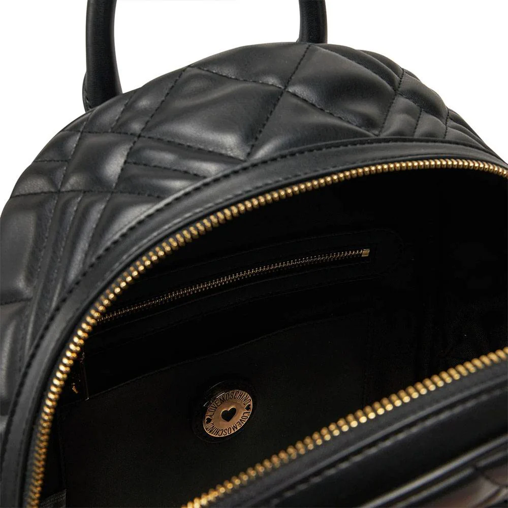 Zaino Love Moscino donna effetto trapuntato colo logo color oro, disponibile in nero.