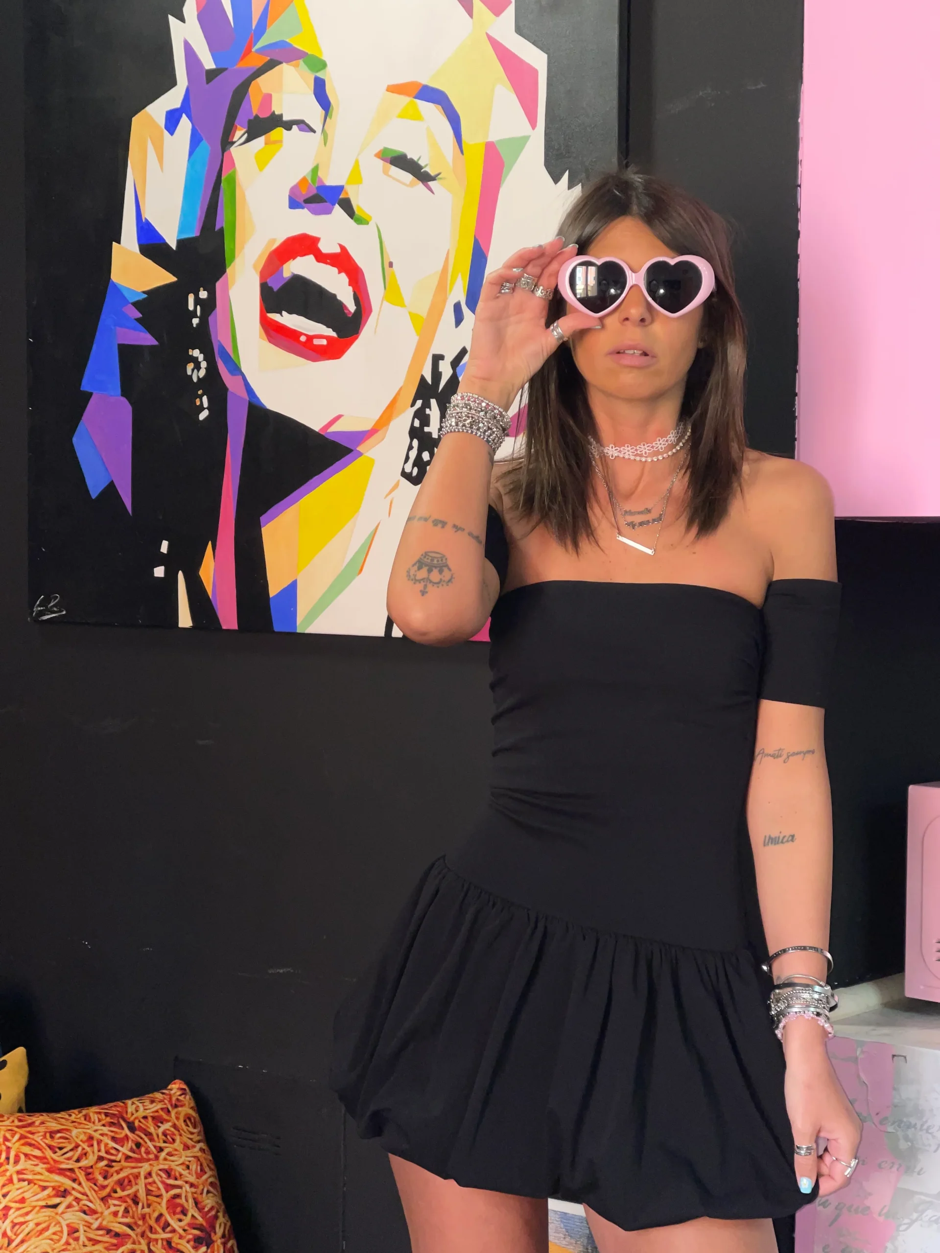 Taglia: S/M – M/L Descrizione: Vestito corto con scollo dritto e spalle scoperte. Dettaglio di fodera interna. Orlo a palloncino. Vestibilitร aderente. Vestibilitร : S/M 38/40M/L 40/42 Misure: S/M: Larghezza torace 34-44 cm , Larghezza vita 36-46 cm , Lunghezza totale 68 cmM/L: Larghezza torace 36-46 cm , Larghezza vita 36-46 cm , Lunghezza totale 70 […]