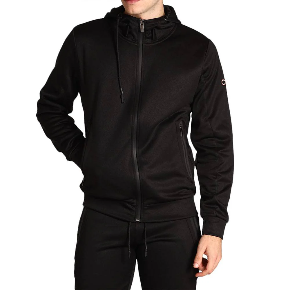 Dettagli: Scollo con cappuccio e coulisse. Chiusura frontale con zip. Tasche laterali con zip. Polsi e fondo elasticizzati. Logo applicato sulla manica.