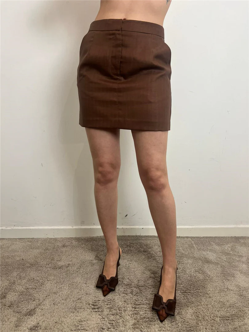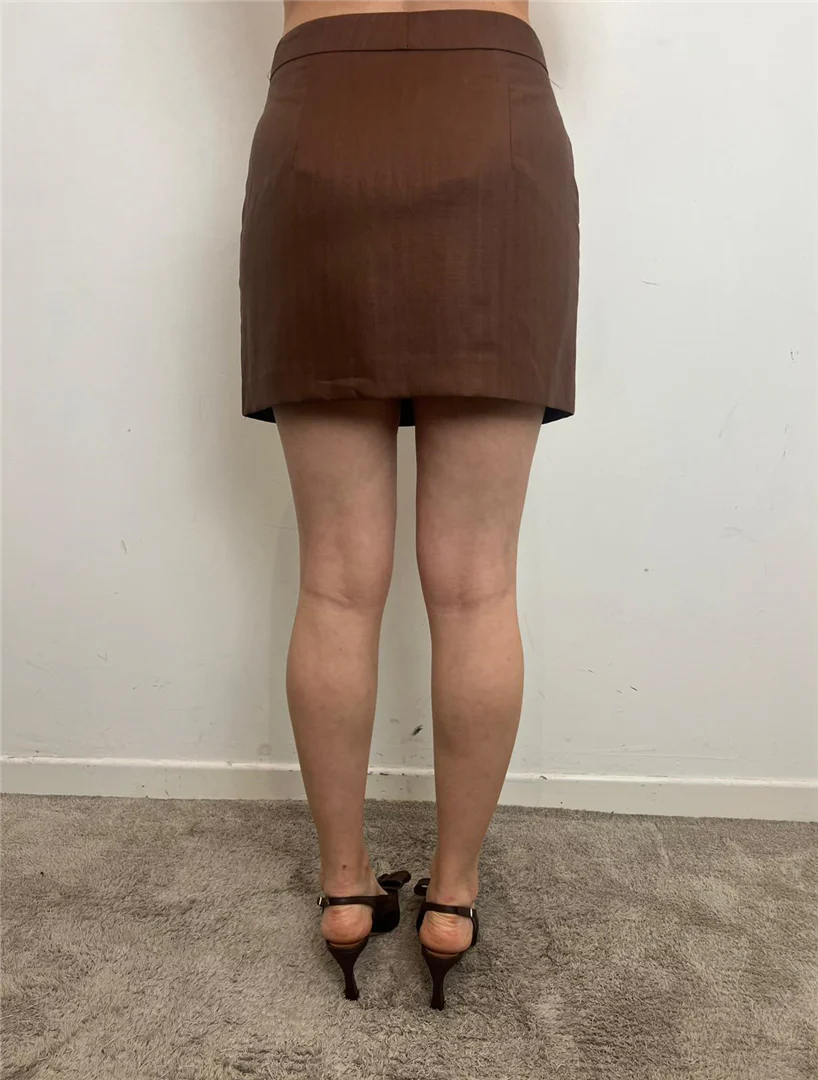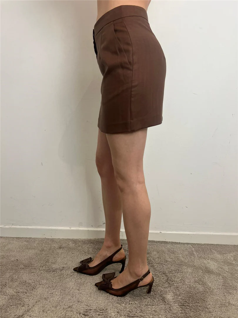 Minigonna Vicolo in misto lino color bruciato. Freschezza e stile per un look estivo elegante e versatile.