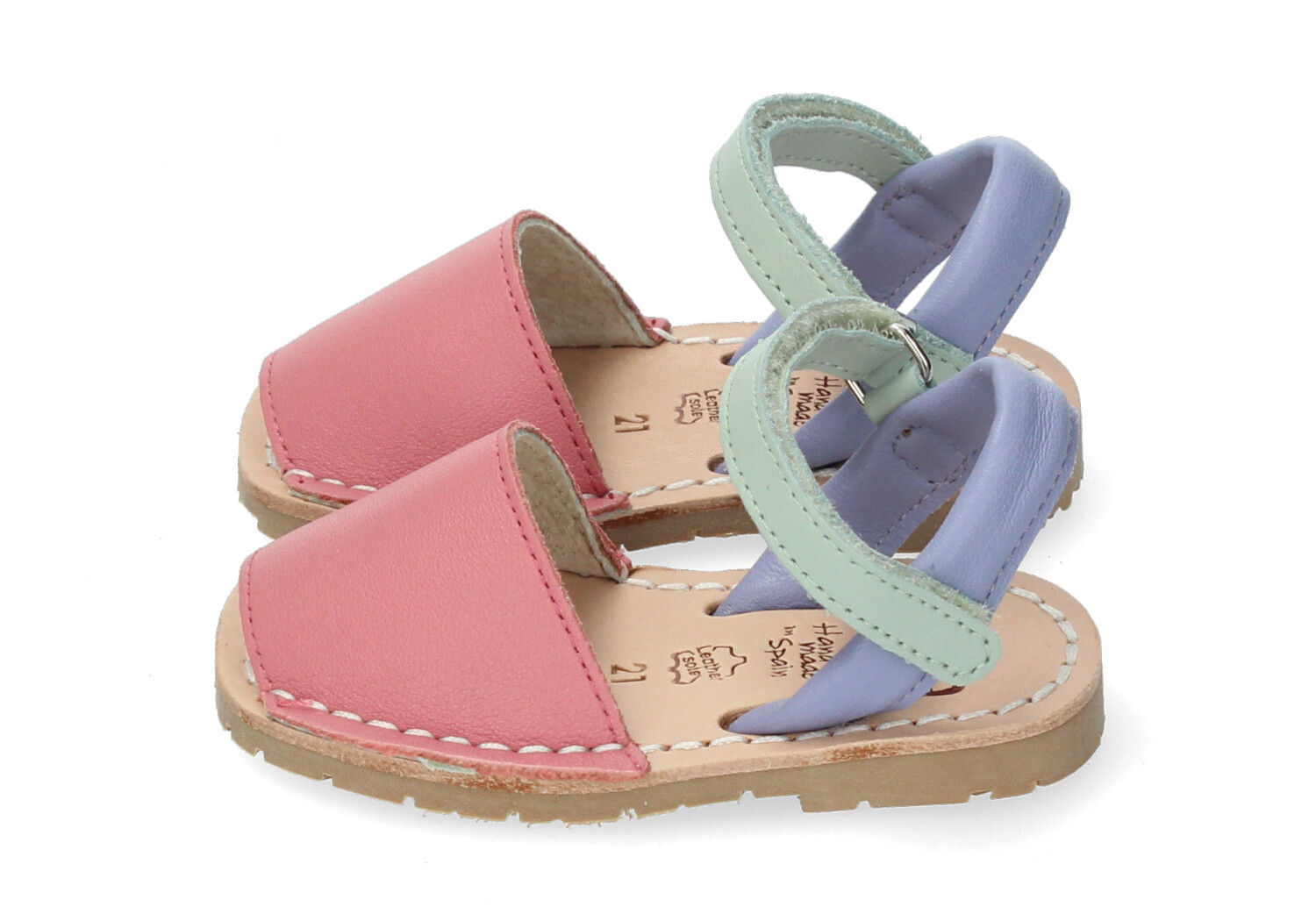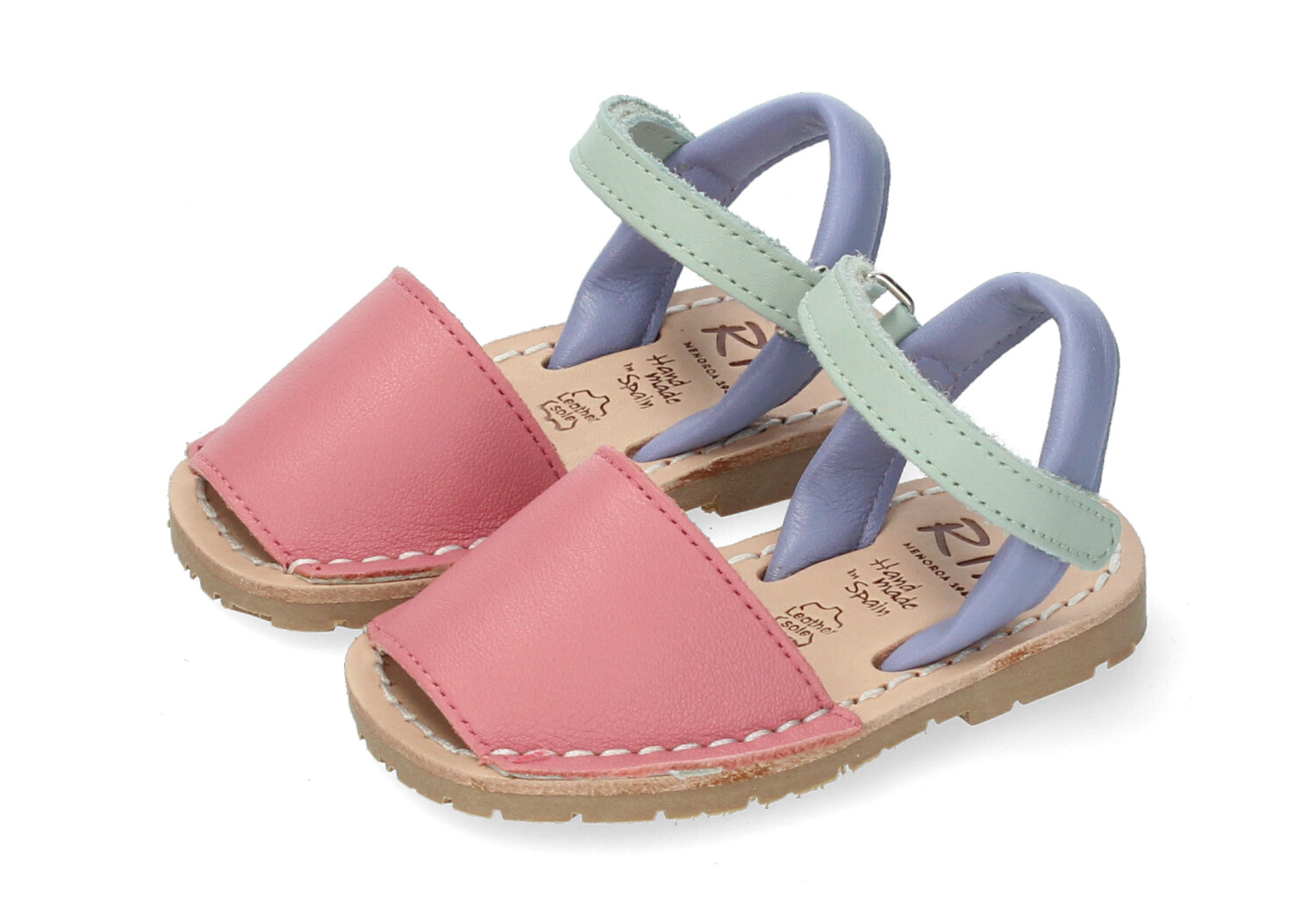 Minorchine bimba caramella fa parte dei Sandali Minorchina: Tradizione e Stile Mediterraneo I sandali Minorchine sono un classico senza tempo, ispirati alla tradizione artigianale dell’isola di Minorca. Perfetti le mamme che cercano comodità senza rinunciare allo stile, questi sandali si adattano facilmente a qualsiasi outfit estivo, dal casual al più elegante. Scopri perché le Minorchine sono amate da generazioni per la loro versatilità e qualità. Caratteristiche Principali Design Iconico: Il sandalo Minorchina presenta un design semplice ed elegante, con una fascia larga che avvolge il piede e una suola bassa e comoda. Ideale per lunghe passeggiate o giornate in spiaggia. Materiali di Alta Qualità: Realizzato in pelle naturale, il sandalo offre morbidezza e traspirabilità. La suola è in gomma resistente, assicurando aderenza e durata anche dopo molteplici utilizzi. Comfort Garantito: Grazie alla struttura leggera e alla calzata ergonomica, questi sandali offrono comfort per tutto il giorno. L’ampia fascia sul dorso del piede e il cinturino posteriore mantengono il piede ben saldo, senza sacrificare la libertà di movimento. Versatilità Perfette per qualsiasi occasione, le Minorchine sono l’accessorio ideale per il tuo guardaroba estivo. Puoi indossarle con: Outfit Casual: Abbinale a un paio di jeans o shorts per un look informale, perfetto per una passeggiata o una giornata di shopping. Look Elegante: Se hai in programma una serata estiva o un pranzo in riva al mare, le Minorchine si abbinano perfettamente anche a vestiti leggeri o gonne fluide, regalando un tocco di eleganza mediterranea. Un Pezzo di Storia Le Minorchine nascono come calzatura pratica e funzionale per i contadini dell’isola di Minorca. Oggi, questo modello si è evoluto, diventando un simbolo di stile che fonde tradizione e modernità. Con un paio di sandali Minorchine, porti con te non solo un accessorio alla moda, ma anche un pezzo di storia mediterranea. Scegli il sandalo Minorchina per un’estate all’insegna dello stile e del comfort. Sandali tradizionali minorchini con un’aderenza extra sulla caviglia. Minorchine bimba caramella abbinato al rosa bubblegum, verde acqua e viola è realizzato con materiali di alta qualità facili da pulire. Ha un cinturino di fissaggio aggiuntivo per la caviglia che può essere regolato a piacimento sul piede, impedendo così che si apra. Marchio Ria Menorca