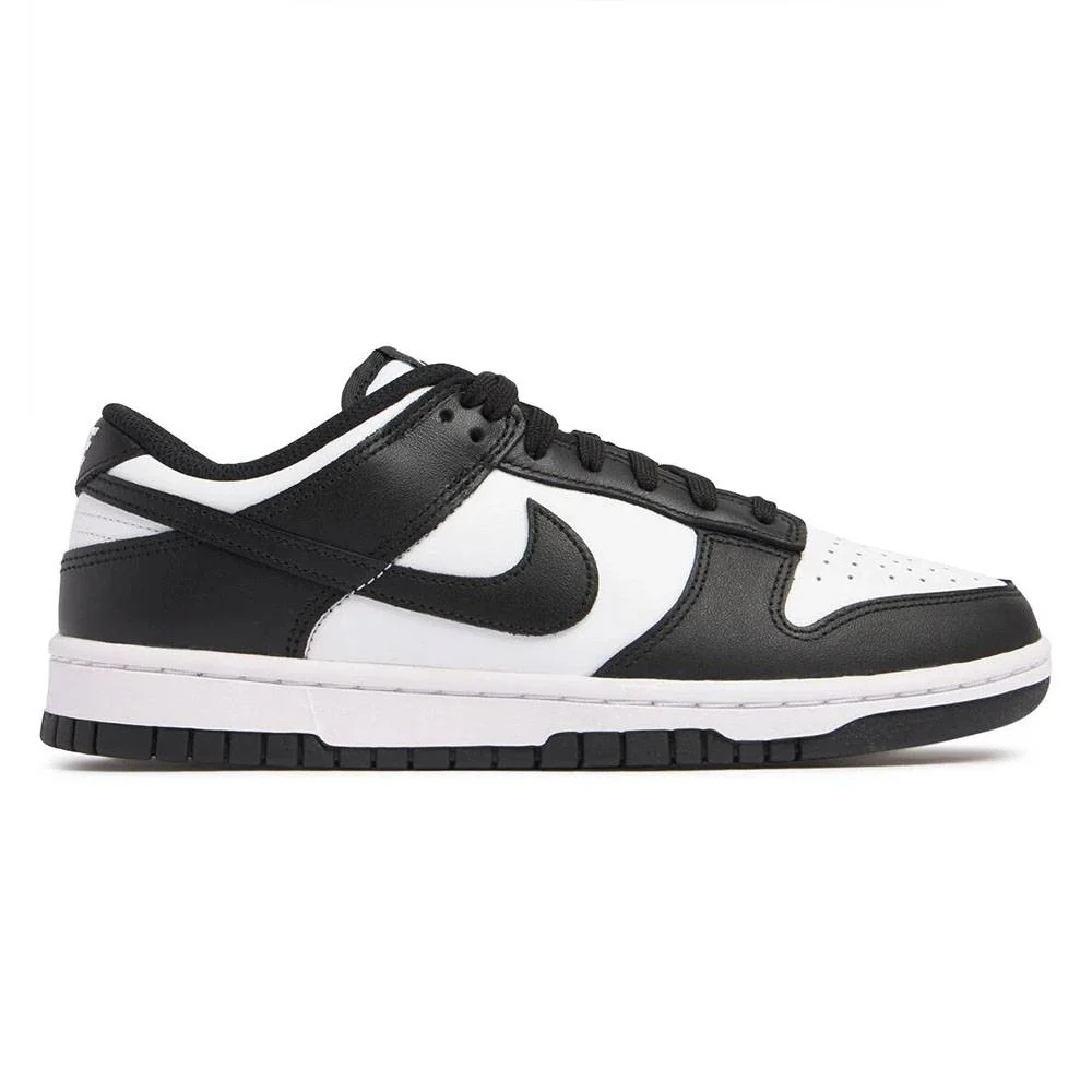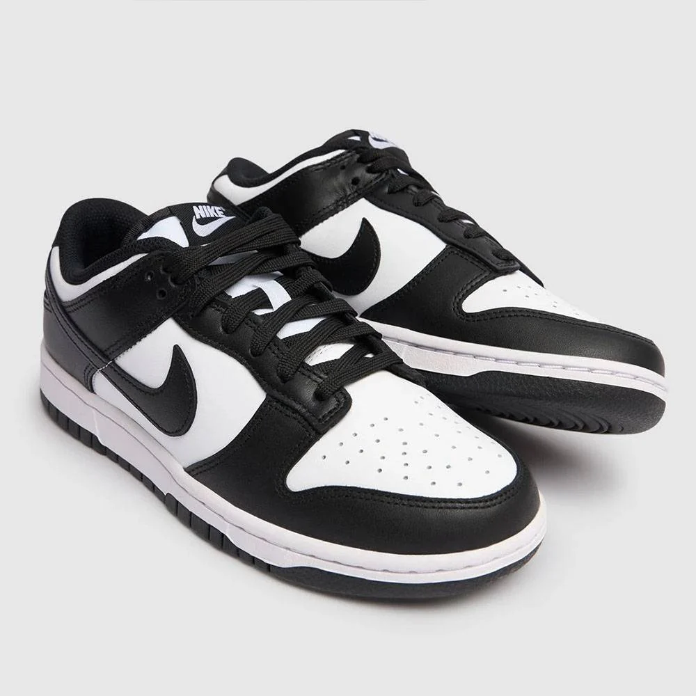 La scarpa presenta una base in pelle bianca con sorprendenti sovrapposizioni nere sulla punta e sul tallone. Il marchio Nike bianco sull’etichetta della linguetta intrecciata e sulla linguetta del tallone risalta sullo sfondo nero. Il design รจ completato da un’intersuola bianca abbinata a una suola in gomma nera.