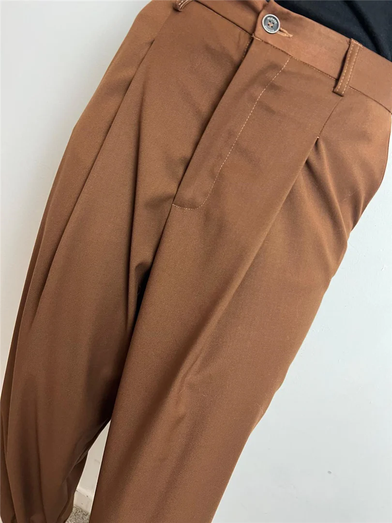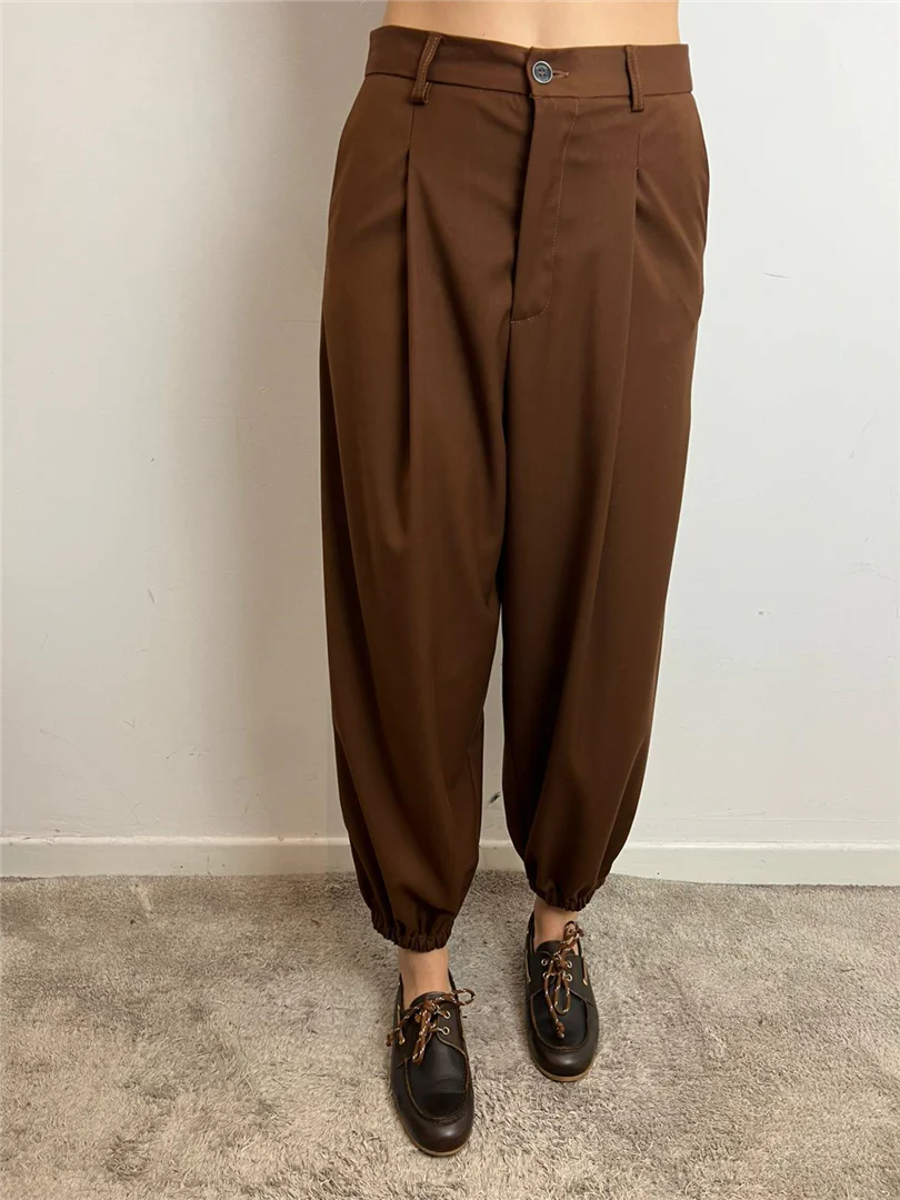 Pantalone-Please,Modello Morbido Con Elastico Al Fondo,Tasche Laterali E Chiusura Bottone E Zip.Perfetto Per Look Casual Ma Curati.