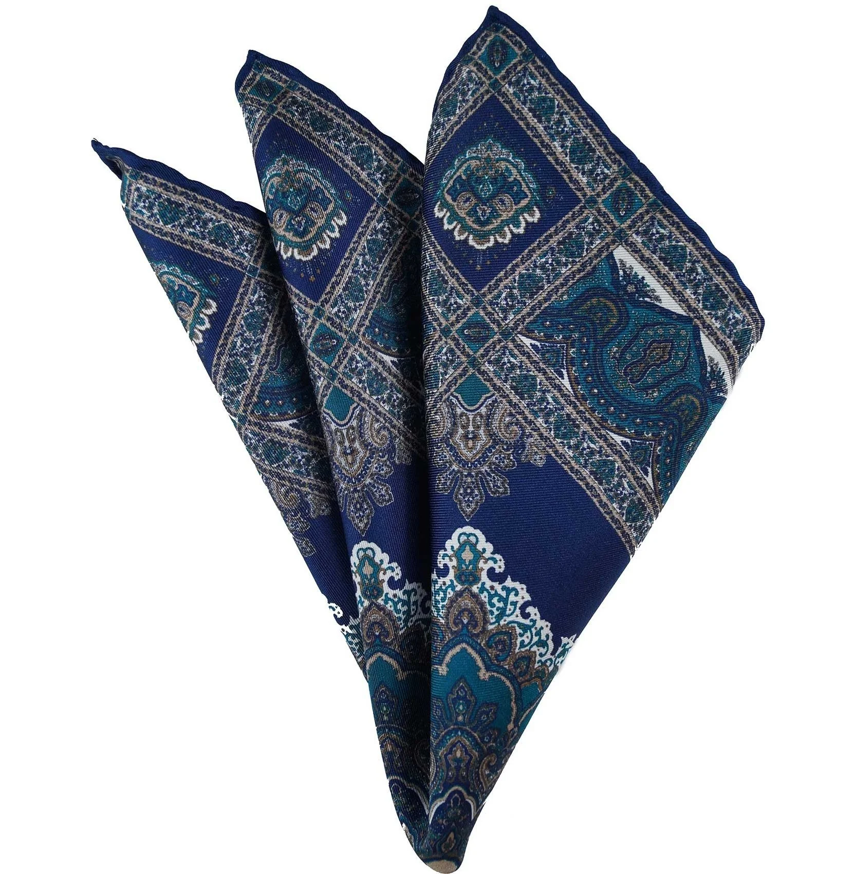 Patterned blue and green poket square