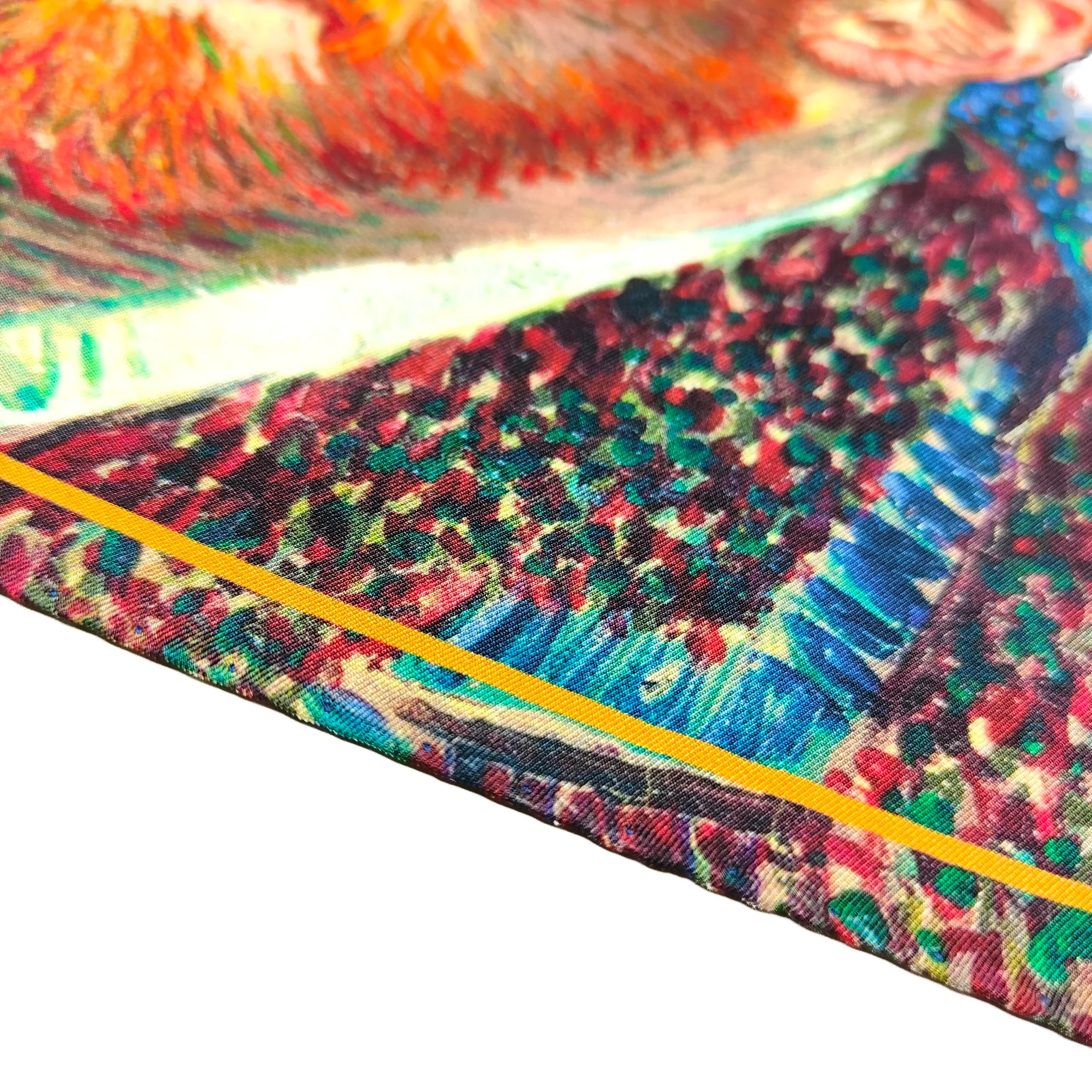 Realizzate a mano in Italia, ogni pochette è un piccolo capolavoro di artigianalità. Le stampe, frutto di design esclusivi, includono motivi originali e fedeli riproduzioni di celebri opere d’arte, trasformando ogni accessorio in una vera e propria tela da indossare.