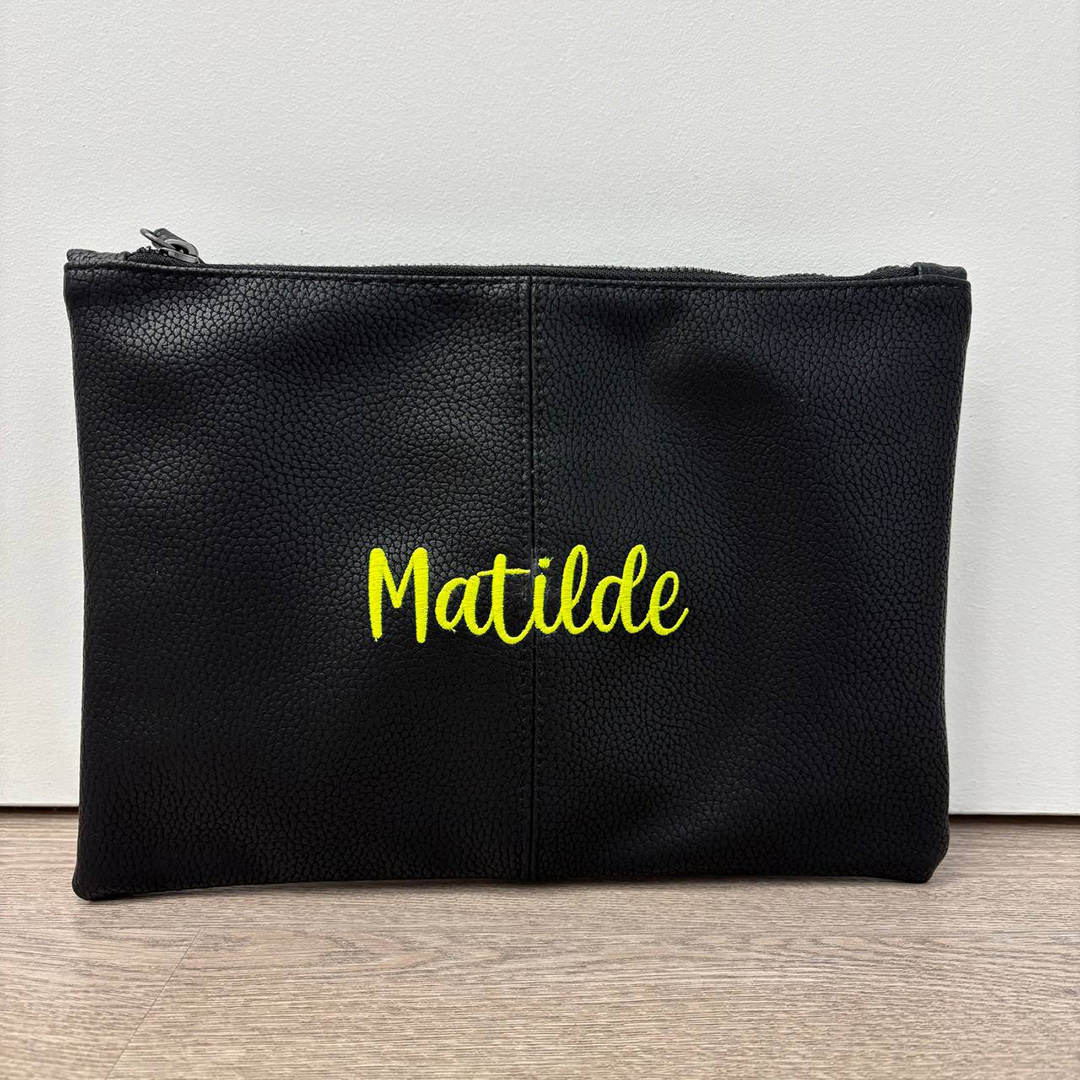 Pochette in ecopelle morbida personalizzabile โ Eleganza e versatilitร in un accessorio unico La pochette in ecopelle morbida personalizzabile รจ lโaccessorio perfetto per chi desidera unire stile, praticitร e un tocco personale. Realizzata con materiali di alta qualitร , questa pochette si distingue per la sua texture morbida e piacevole al tatto, garantendo un look raffinato e senza tempo. Un accessorio indispensabile per ogni occasione Grazie al suo design essenziale ed elegante, questa pochette si adatta a qualsiasi situazione: Perfetta come beauty case per organizzare trucchi e piccoli accessori. Ideale come porta documenti da viaggio, per avere sempre a portata di mano passaporto, biglietti e carte. Unโottima borsa da sera, da portare a mano o da inserire nella borsa piรน grande per tenere in ordine gli oggetti essenziali. Personalizzazione esclusiva Ciรฒ che rende questa pochette davvero speciale รจ la possibilitร di personalizzarla con iniziali o un nome ricamato Grazie alla tecnica di ricamo di alta qualitร , puoi rendere il tuo accessorio unico e irripetibile, perfetto per te o come idea regalo originale per una persona cara. Unโidea regalo raffinata e sostenibile Se sei alla ricerca di un regalo personalizzato che colpisca nel segno, questa pochette รจ la scelta ideale. Il suo design curato e minimalista, unito alla possibilitร di aggiungere un dettaglio personalizzato, la rende perfetta per compleanni, anniversari, Natale o qualsiasi altra occasione speciale. Inoltre, lโecopelle con cui รจ realizzata รจ una scelta consapevole e sostenibile, ideale per chi desidera prodotti di qualitร senza rinunciare al rispetto per lโambiente. Perchรฉ scegliere la nostra pochette personalizzabile? Qualitร artigianale e materiali premium Personalizzazione unica per un tocco distintivo Versatile e perfetta per ogni esigenza Regalo originale e sostenibile Aggiungi un tocco di eleganza e personalitร al tuo stile con la nostra pochette in ecopelle morbida personalizzabile. Scegli la tua personalizzazione e falla tua. Pochette eco-pelle, tessuto gessato interno completamente foderato, perfetto per iPad mini e tablet, o per pochette a mano, comparto principale regolabile con zip. 100% poliuretano NuHide. Dimensioni: 28 x 20 cm capacitร : 2 litri. Modello unisex due colorazioni.