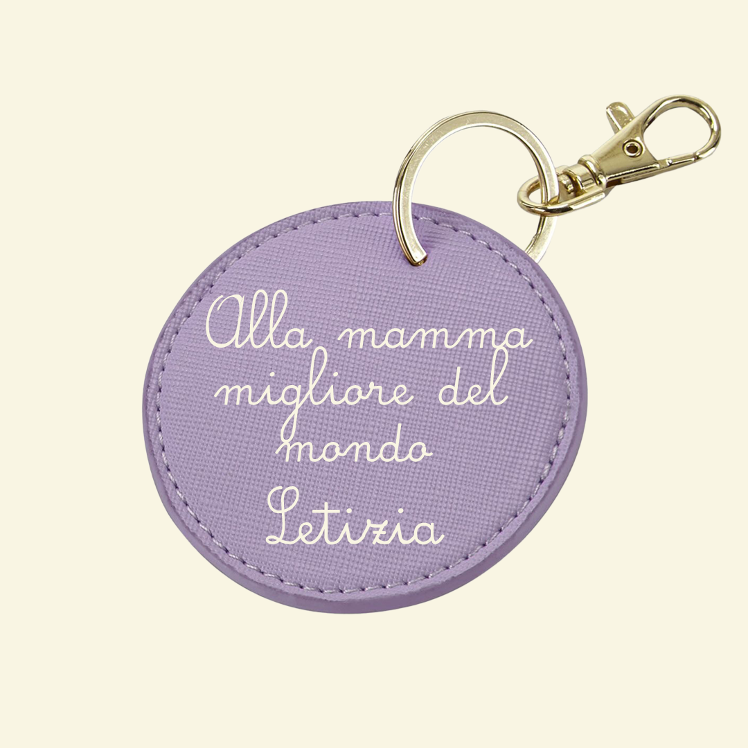 Stupendo portachiavi per la festa della mamma Tantissimi colori tra cui scegliere. Eco pelle effetto saffiano. Scegli la frase che vuoi stampare, il colore e la forma del portachiavi. Attenzione: Il font utilizzato sarร a mia discrezione in base alla lunghezza della frase che non puรฒ essere piรน di 5/6 parole a lato