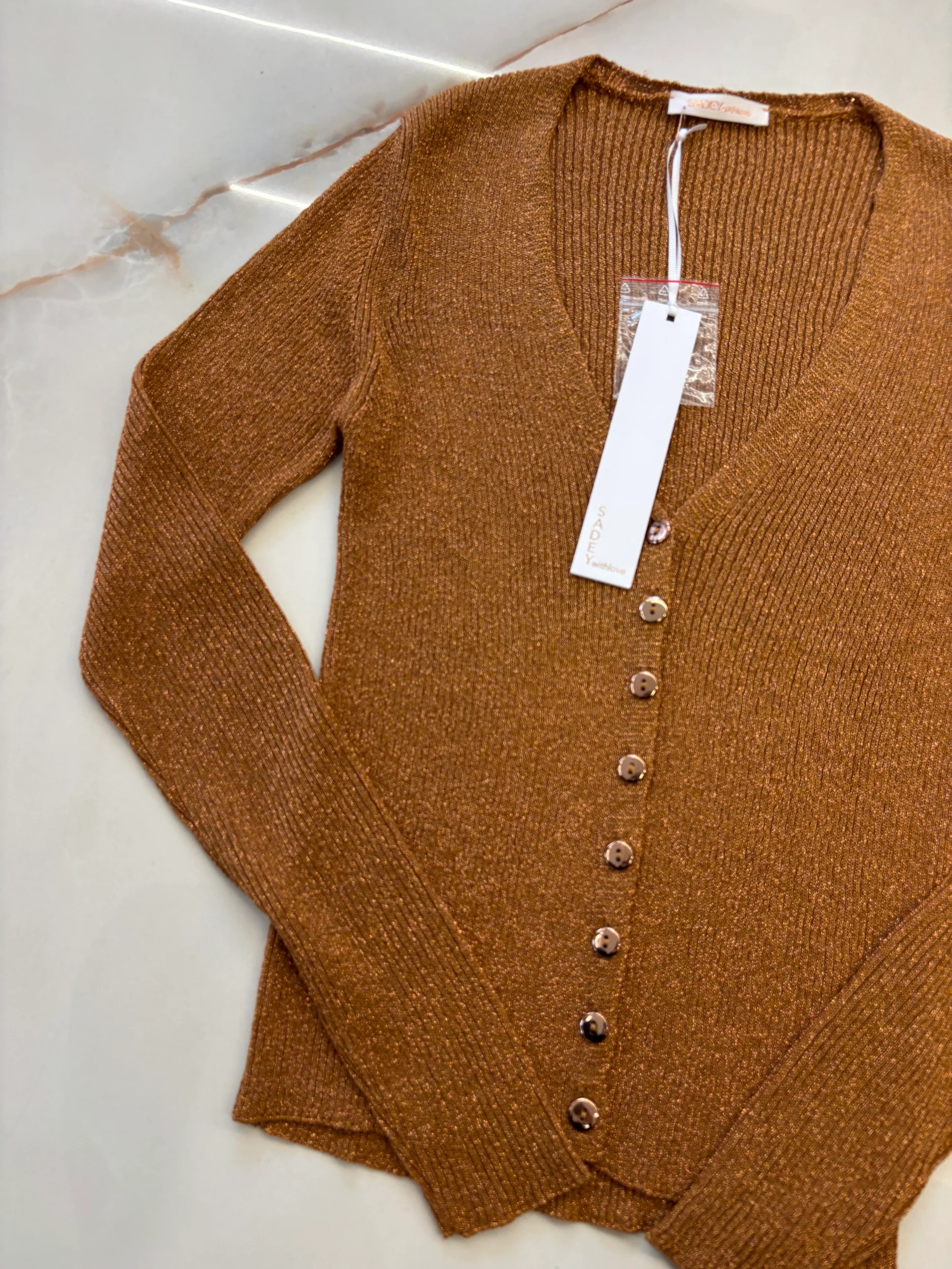In offerta! SADEY WITH LOVE – CARDIGAN LUREX – BRONZO119,00 € Il prezzo originale era: 119,00 €.47,20 €Il prezzo attuale è: 47,20 €. Misura Scegli un'opzioneSSvuota SADEY WITH LOVE - CARDIGAN LUREX - BRONZO quantità Aggiungi al carrello COD: N/A Categoria: cardigan Descrizione Informazioni aggiuntive Recensioni (0) Descrizione Composizione: 70% viscosa 15% poliestere 15% poliammidica Informazioni aggiuntive Misura S Recensioni Ancora non ci sono recensioni. Recensisci per primo “SADEY WITH LOVE – CARDIGAN LUREX – BRONZO” Annulla rispostaIl tuo indirizzo email non sarà pubblicato. I campi obbligatori sono contrassegnati *La tua valutazione * Valuta… Perfetto Buono Sufficiente Non male Scarso La tua recensione *Nome * Email * Salva il mio nome, email e sito web in questo browser per la prossima volta che commento. Prodotti correlati In offerta! SUSY MIX – CARDIGAN OVER – BEIGE 69,90 € Il prezzo originale era: 69,90 €.55,92 €Il prezzo attuale è: 55,92 €. Scegli Questo prodotto ha più varianti. Le opzioni possono essere scelte nella pagina del prodotto In offerta! SUSY MIX – CARDIGAN ART. 570100 – NERO 69,90 € Il prezzo originale era: 69,90 €.55,92 €Il prezzo attuale è: 55,92 €. Scegli Questo prodotto ha più varianti. Le opzioni possono essere scelte nella pagina del prodotto In offerta! TENSIONE IN – ALANUI BANDANA – GIALLO 124,00 € Il prezzo originale era: 124,00 €.99,20 €Il prezzo attuale è: 99,20 €. Scegli Questo prodotto ha più varianti. Le opzioni possono essere scelte nella pagina del prodotto In offerta! GUESS CARDIGAN DONNA W3YR23 Z37J2 90,00 € Il prezzo originale era: 90,00 €.50,40 €Il prezzo attuale è: 50,40 €. Scegli Questo prodotto ha più varianti. Le opzioni possono essere scelte nella pagina del prodotto