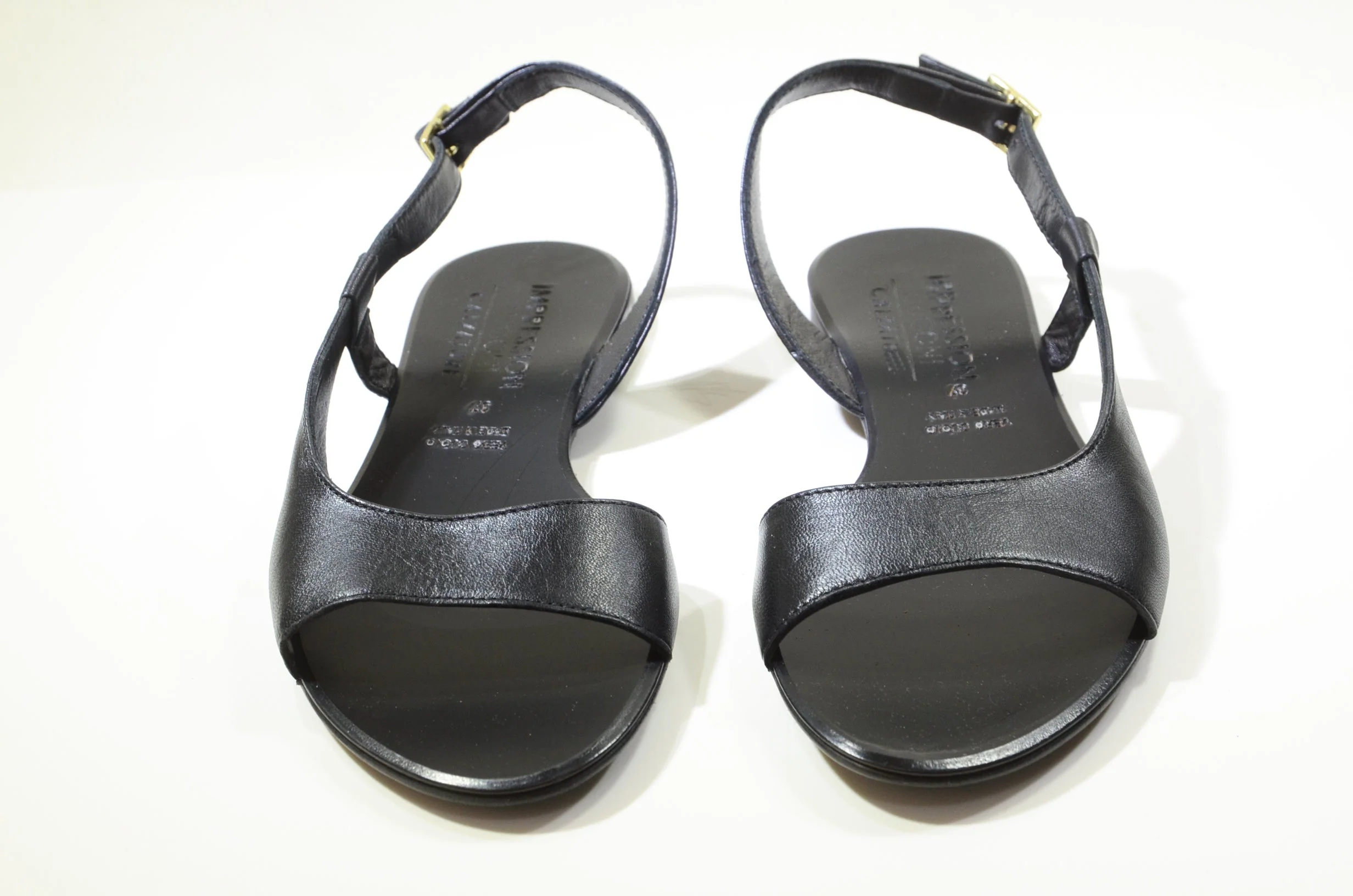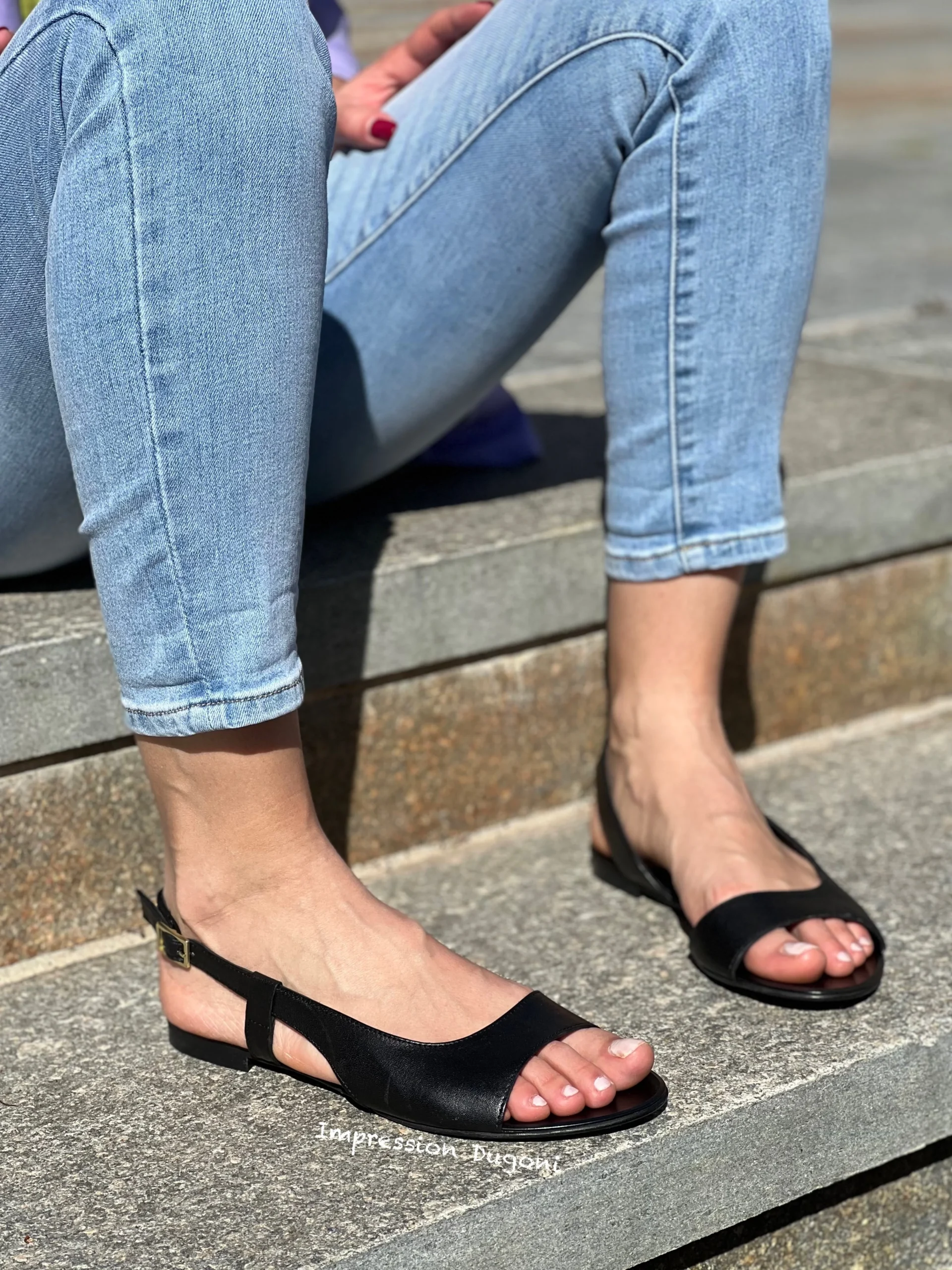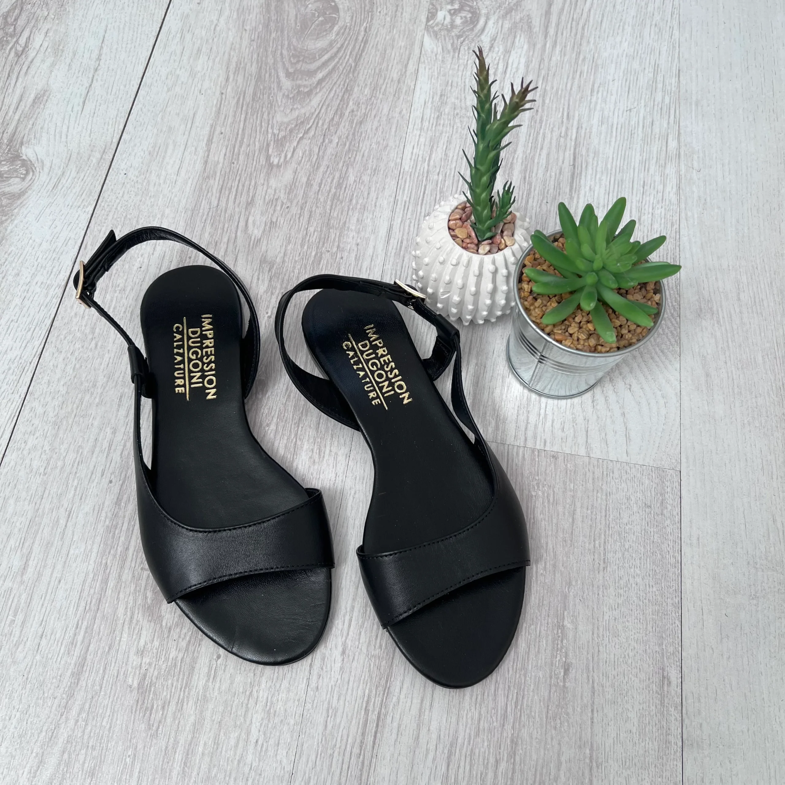 Sandali artigianali in vera pelle color nero. Sottopiede in cuoio. Vestibilitร regolare. Made in Italy.