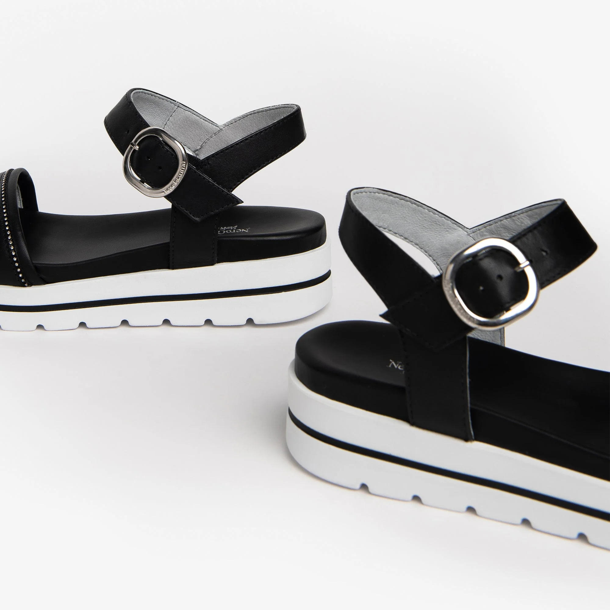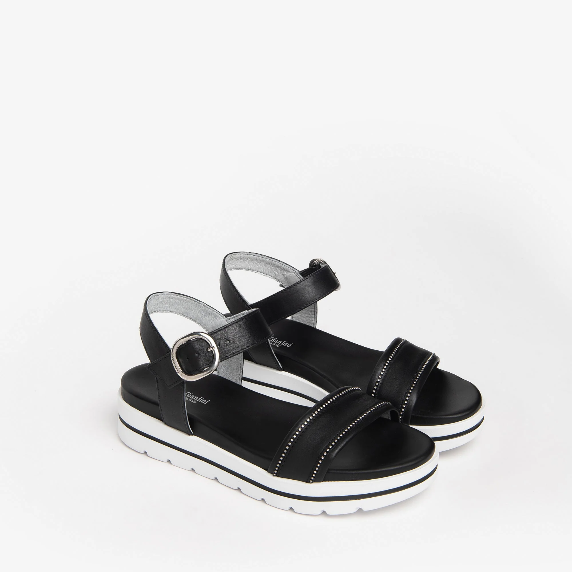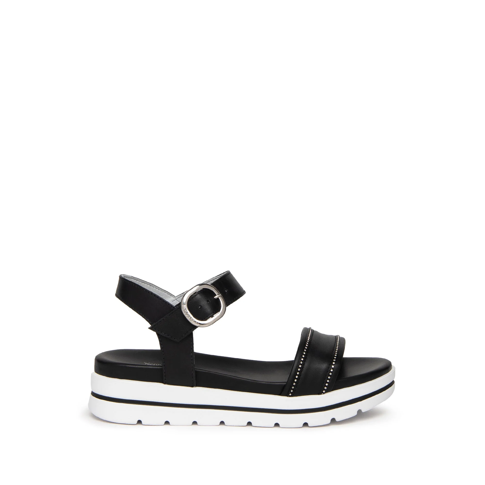 Sandali NeroGiardini, personalitร e stile unico. Le calzature NeroGiardini sono realizzate in Italia, utilizzando materiali di qualitร e le piรน avanzate tecniche di lavorazione. Ogni scarpa รจ il risultato della esperta competenza artigiana tramandata di generazione in generazione. Tutti i modelli sono progettati per offrire comoditร e versatilitร in ogni momento della giornata, dal lavoro alla serata speciale. Il reparto stile NeroGiardini รจ costantemente alla ricerca di nuove tendenze per offrire calzature sempre attuali e originali. NeroGiardini propone anche una collezione di borse, perfettamente abbinabili alle calzature, per un total look Made in Italy impeccabile. La produzione Made in Italy delle calzature NeroGiardini รจ sottolineata dal tricolore impresso sulle suole e sul packaging.