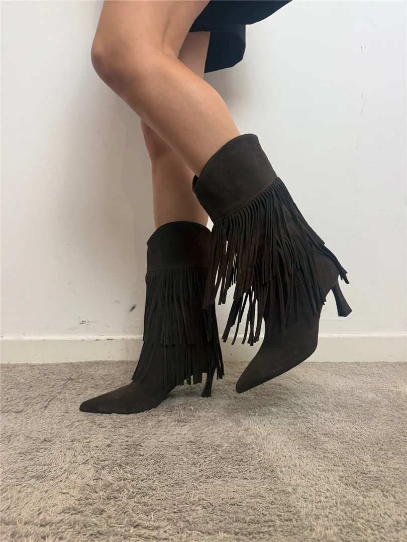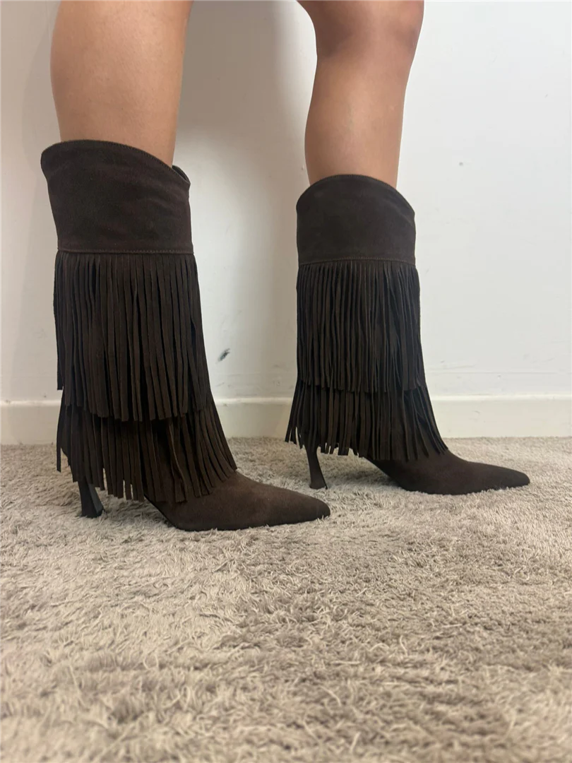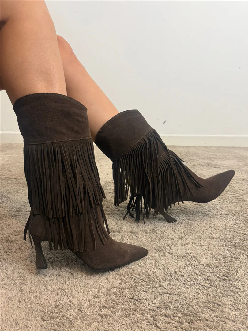 Stivale In Camoscio Con Frange Tacco Cm 7 – Ovye’ cod. 25/AT5016CAM