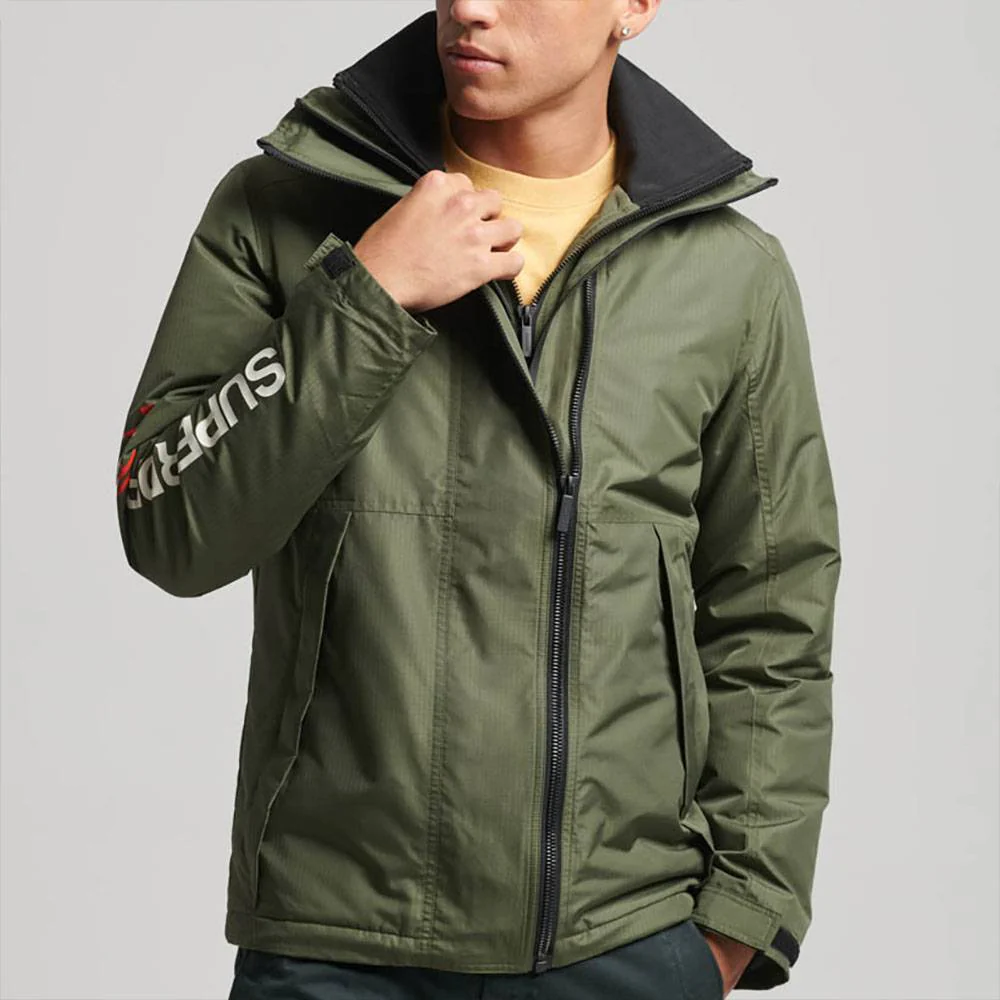 Vestibilitร slim: progettata per adattarsi piรน vicino al corpo per un look piรน su misura, Colletto a coste, Cappuccio foderato con cordino elastico di regolazione, Chiusura con zip a triplo strato a doppio cursore, Polsini regolabili con gancio e anello, Due tasche con zip, Orlo con cordino elastico, Trapuntato fodera interna, tasca interna in rete, marchio stampato sulla manica destra, logo Superdry ricamato sul retro.