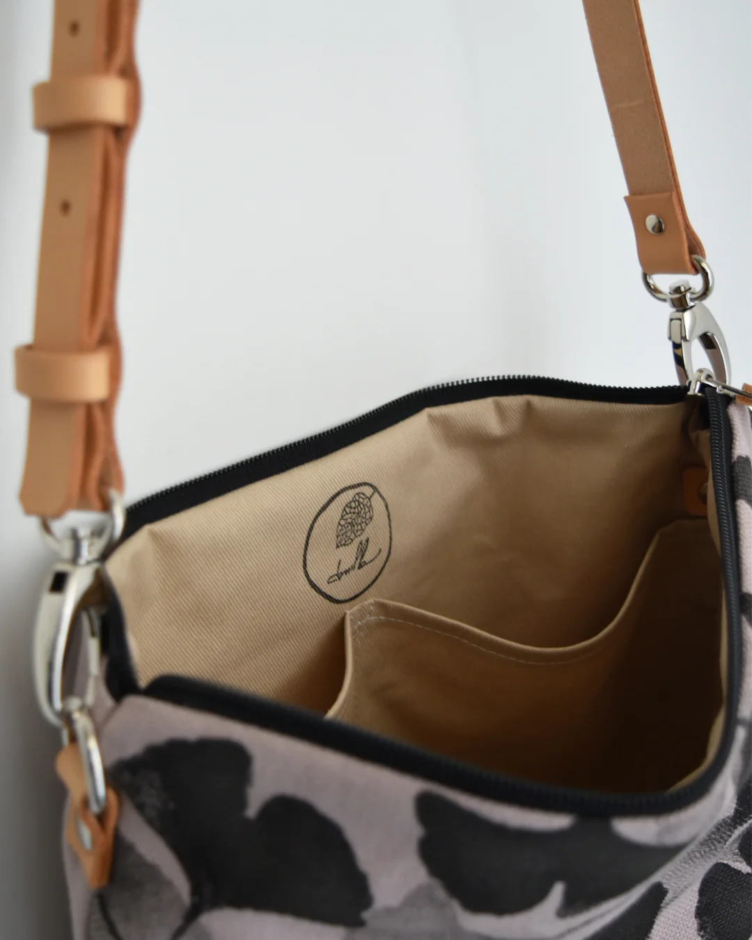 Chiusura con cerniera lampo e due tasche interne