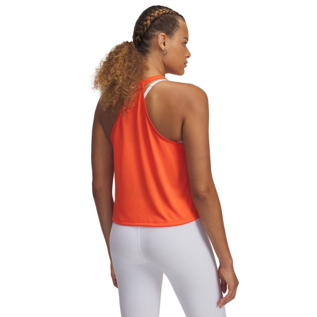 Questa canotta è realizzata nel classico tessuto UA Tech™ che ti mantiene leggero e fresco, con un design svasato per una vestibilità fluida che ti consente la massima libertà di movimento.