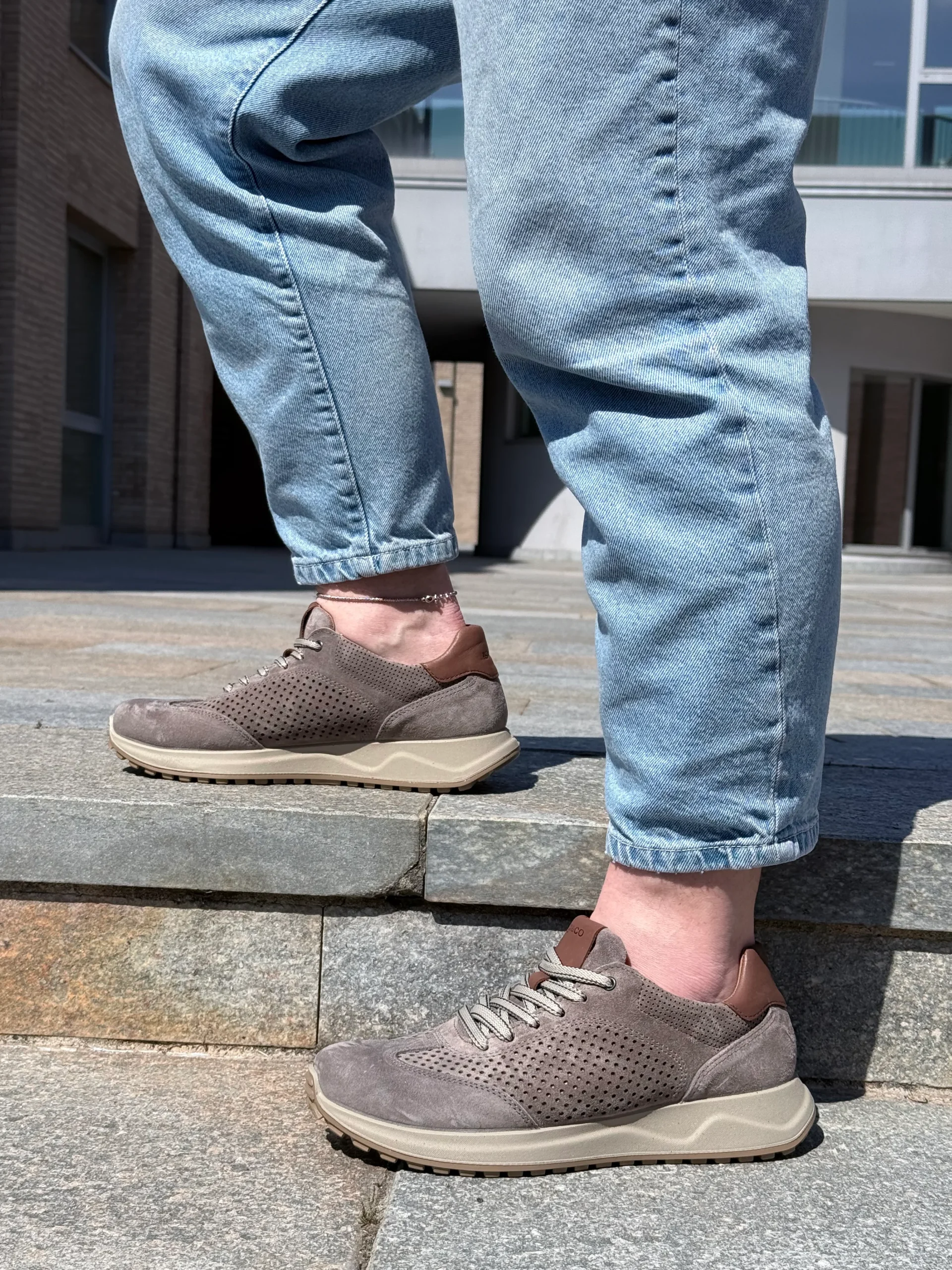 Queste sneakers realizzate in pelle hanno un look cittadino e versatile, ispirato al mondo del tennis. La microforatura della tomaia permette al piede di rimanere fresco mentre la robustezza del pellame lo protegge adeguatamente. Il dettaglio di stile del nastro rigato aggiungerร personalitร e carattere ad ogni outfit. La suola, minimale, รจ molto leggera e permette di godere di un comfort eccezionale. Il sottopiede anatomico รจ estraibile e rivestito in pelle per assicurare traspirabilitร e igiene.