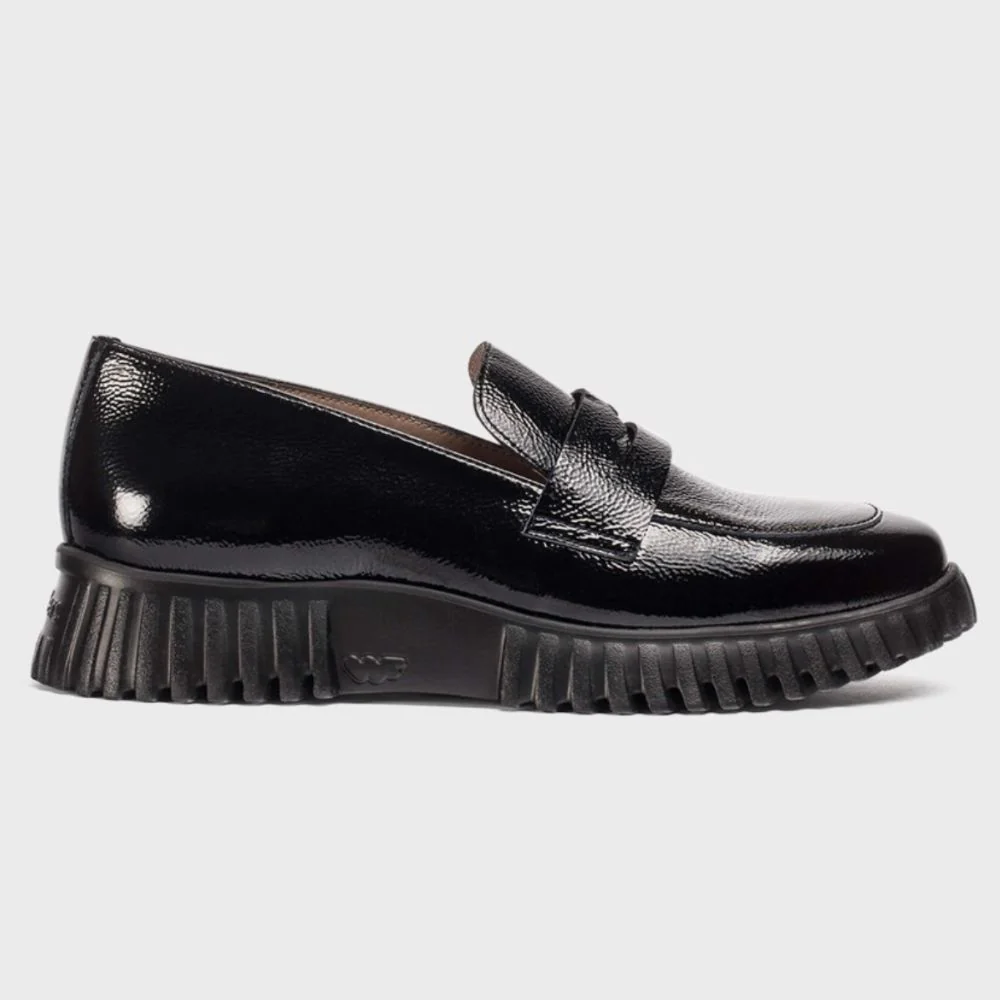 Mocassini FLEXFLY 02 realizzati in vernice nera. Una classica costruzione a mocassino impreziosita da un tocco sportivo e contemporaneo. Presentano un dettaglio con taschino coordinato e punta arrotondata. La suola, sviluppata con tecnologia WondersFlyโข di XL EXTRALIGHTยฎ, garantisce leggerezza eccezionale e comfort straordinario. Inoltre, la soletta interna rimovibile in MemoryGel si adatta perfettamente alla forma del piede, offrendo comfort a ogni passo.