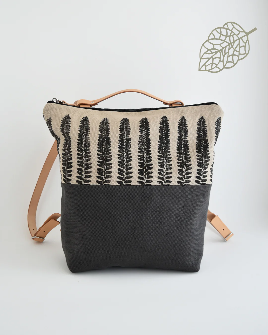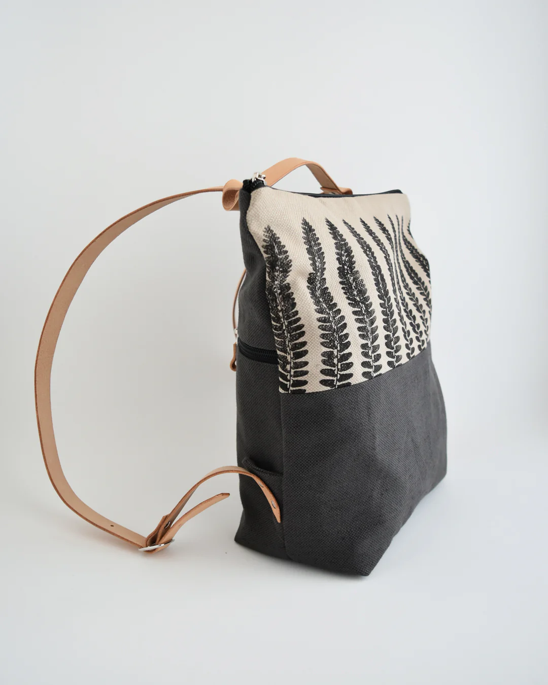 Fronte bicolore: avena, con stampa felce, e grigio scuro
