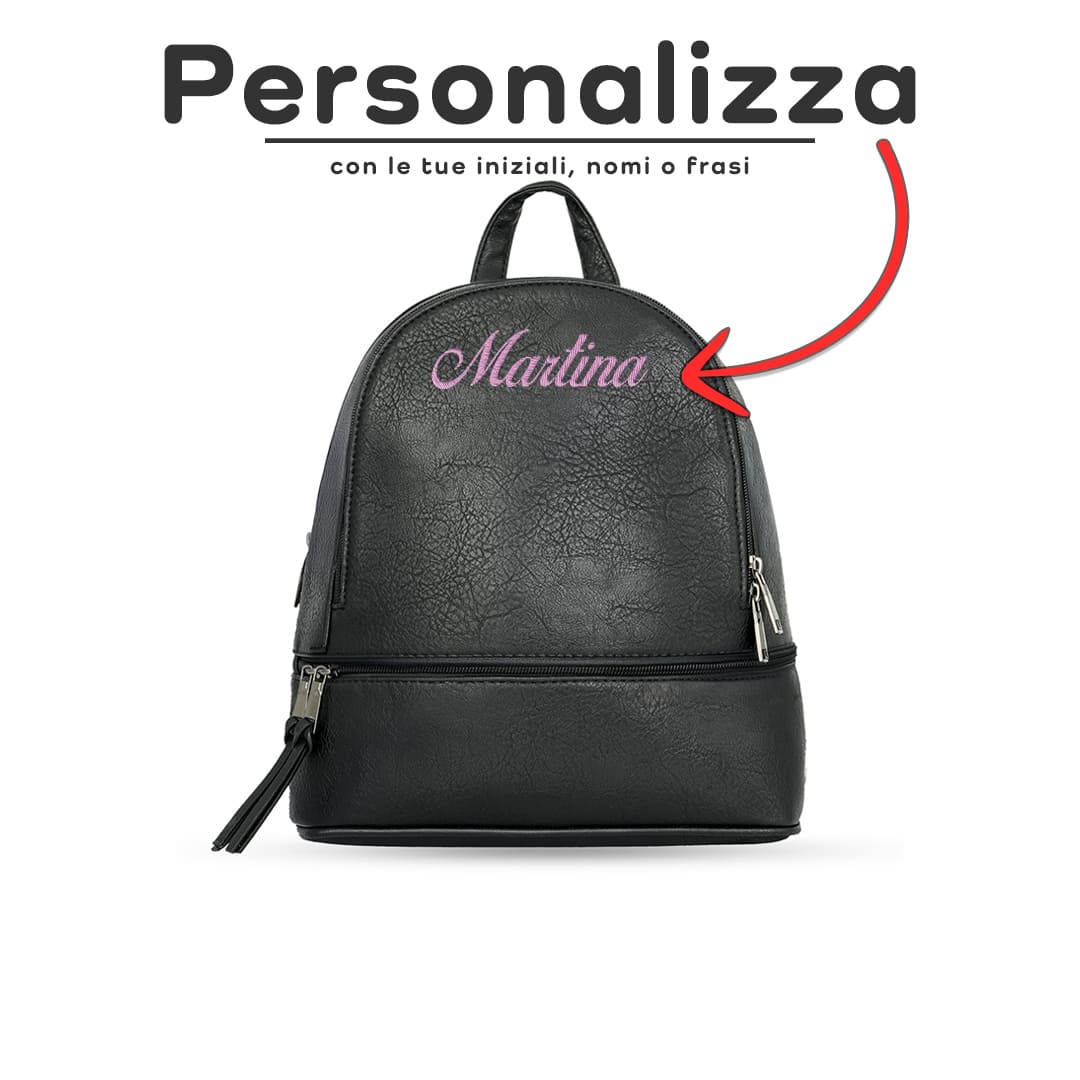 Zaino in ecopelle, misura media, resistente con spalline sottili e non imbottire. Lo zaino è dotato di doppia funzionalità: può essere indossato sia come zaino che come borsa, grazie alla particolare disposizione delle spalline. Presenta uno scomparto grande con taschino interno con zip, e due tasche anteriori, una grande e una piccola. Questo è uno zaino da donna pratico e alla moda. Lo stile casual può essere liberamente abbinato all’abbigliamento per riflettere la tua spontaneità. Rendilo il tuo compagno di viaggio.